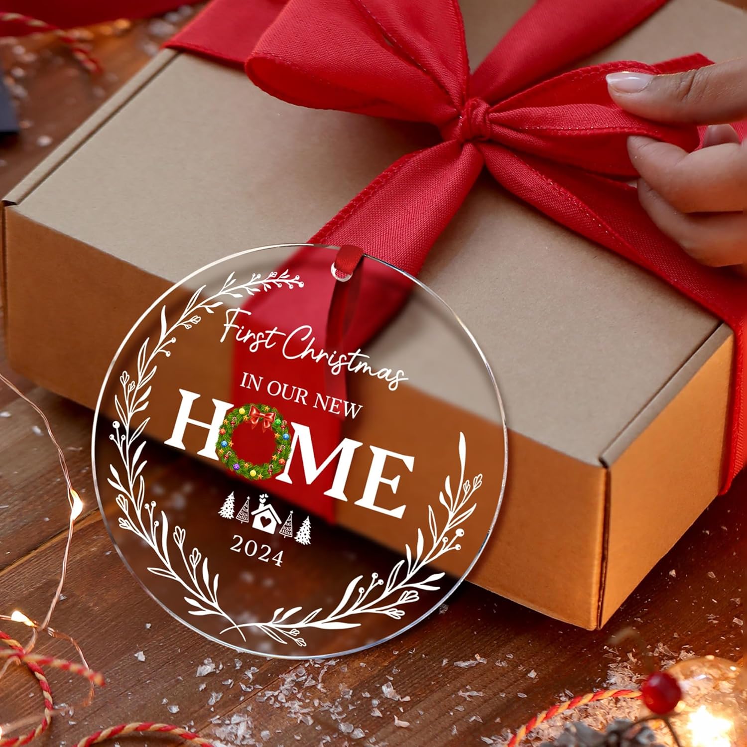 - ā ELEGANT & STYLISH: This "OUR FIRST CHRISTMAS IN OUR NEW APARTMENT 2024" ornament is designed to add a touch of elegance and style to your home decor. It makes a thoughtful gift for new homeowners, helping them create lasting memories in their new space