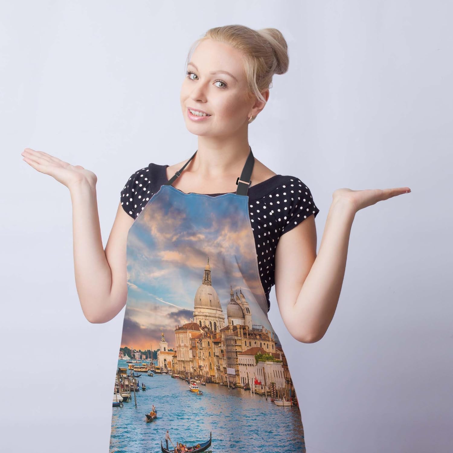 Garden Apron for Women Sunset in Venice Fun Aprons for Men for Kitchen Cooking Restaurant BBQ Painting Crafting Gardening 27” (W) x 31” (H), Waterproof Apron