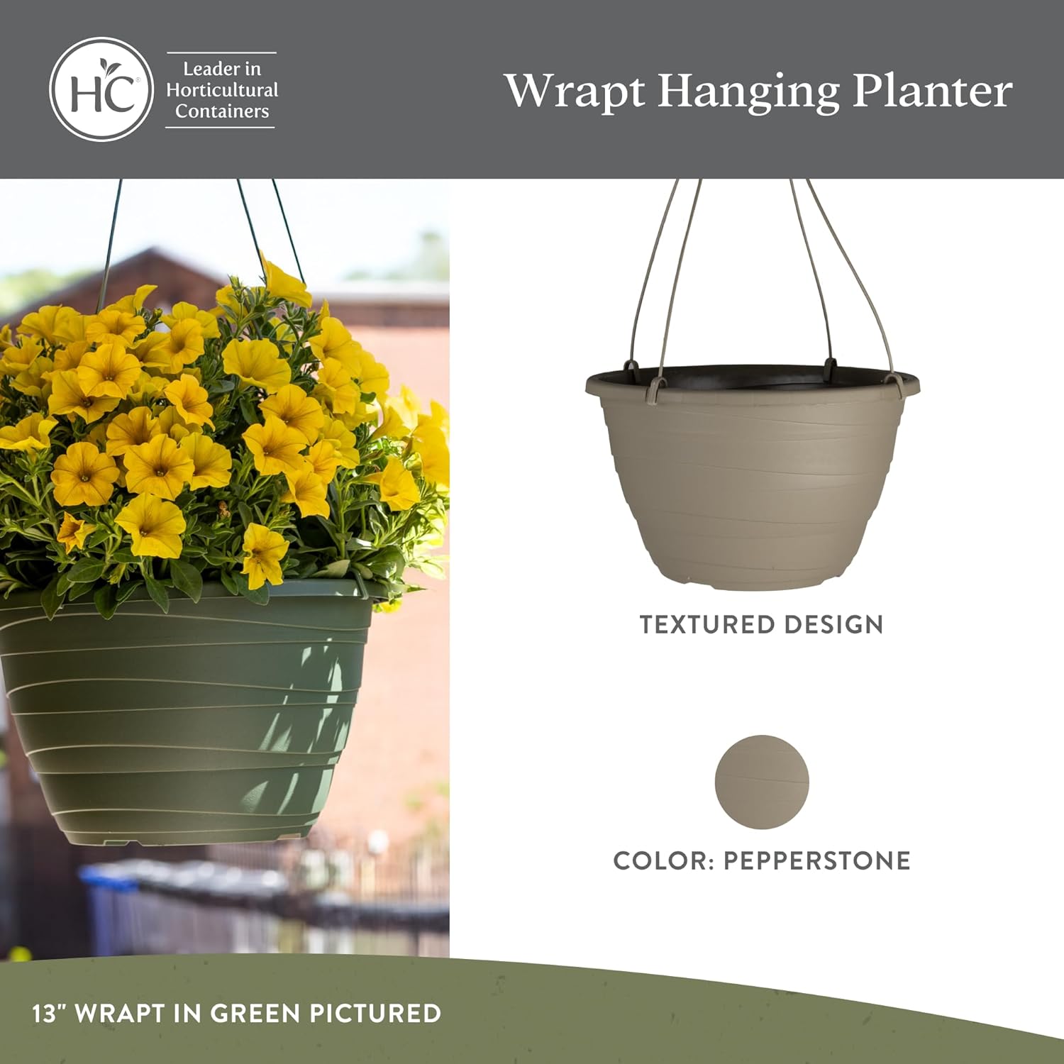 The HC Companies Wrapt Hanging Planters - Lightweight Plant Pot Hanger for Hanging Plants, Vegetables & Herbs - Outdoor & Indoor Hanging Basket for Plants (11" Pepperstone, Pack of 2)