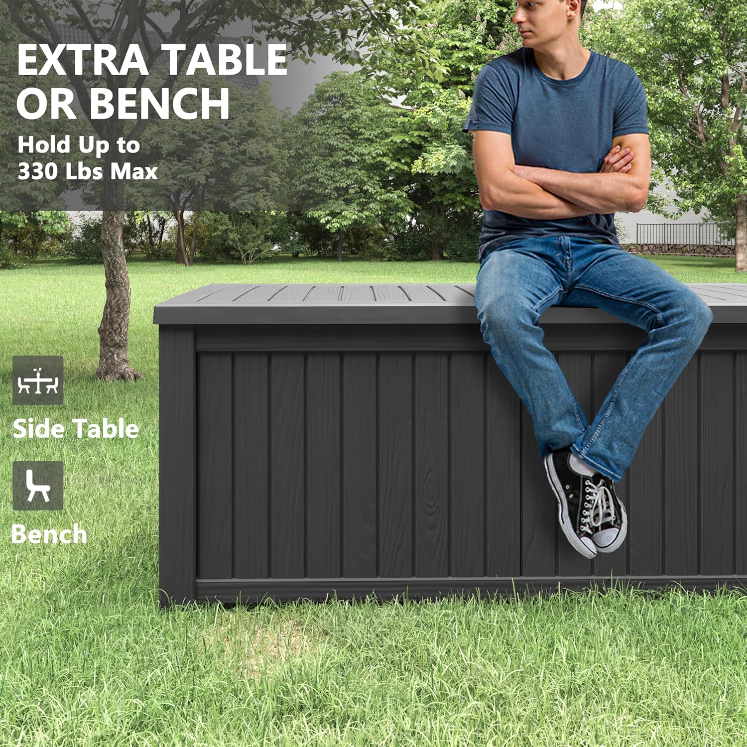 150 Gallon Resin Deck Box, Large Indoor and Outdoor Storage Box, Weatherproof and UV Resistant Outdoor Storage Box with Built-in Steel Beams for Patio, Cushions, Pool Supplies