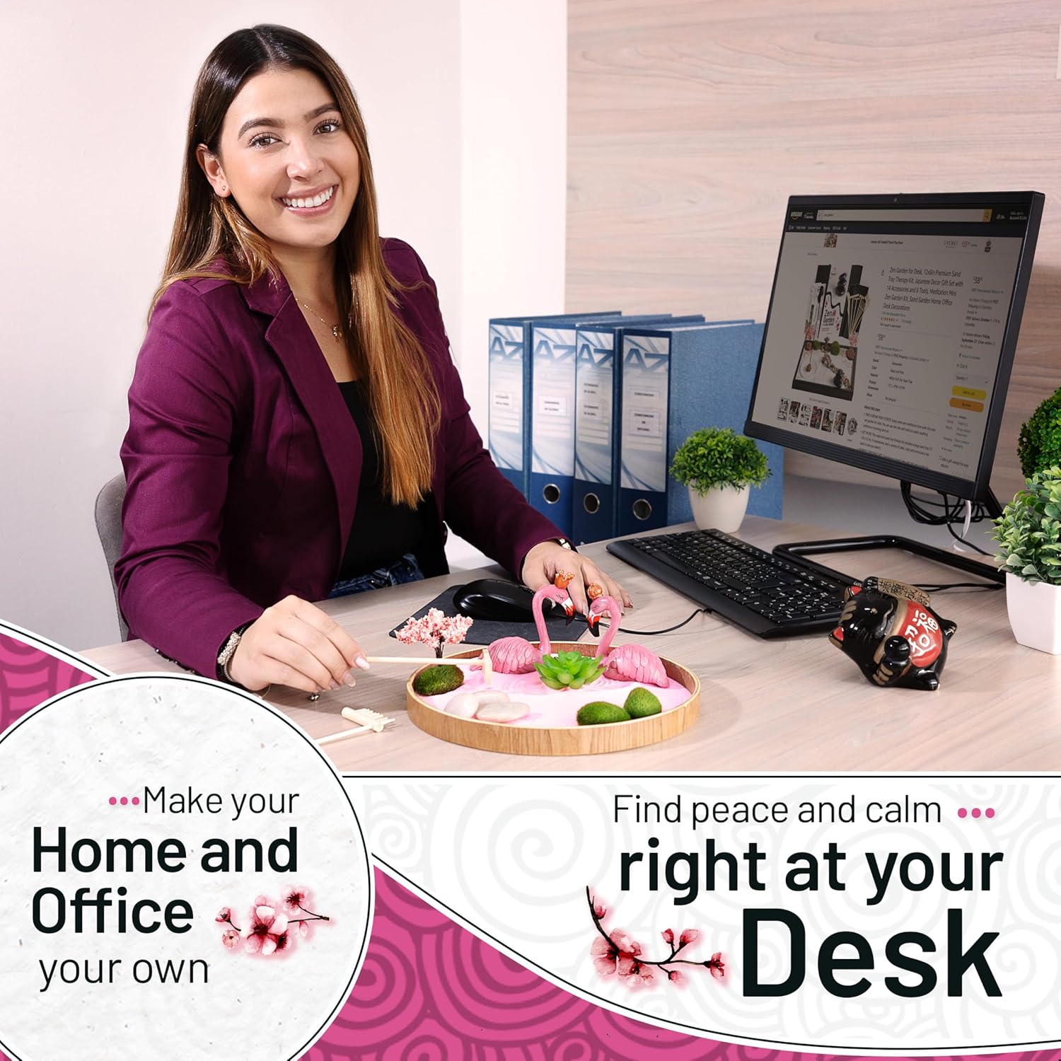 - DELUXE CUTE HOME DECORATION: Add some zen decor to your home or office with this sand garden. It is a stylish and elegant accessory that will enhance any space. You can place it on your wood desk, your kitchen, your meditation room, or anywhere else you want to add some pink beautiful zen.