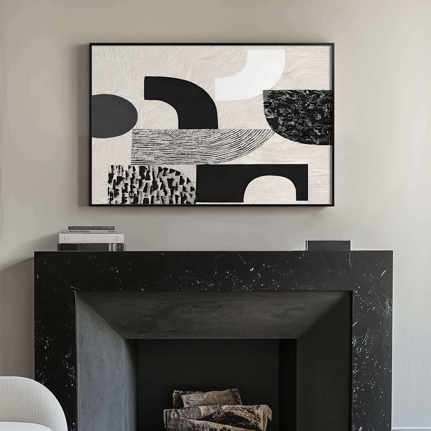 - [Abstract Wall Art]: This artwork features simple, abstract geometric shapes in black and white, creating a strong visual contrast. Its minimalist design suits modern aesthetics is very suitable for wall decoration in living room, hallway, bedroom, dining room, kitchen, study room, bathroom, office, hotel, and bar.