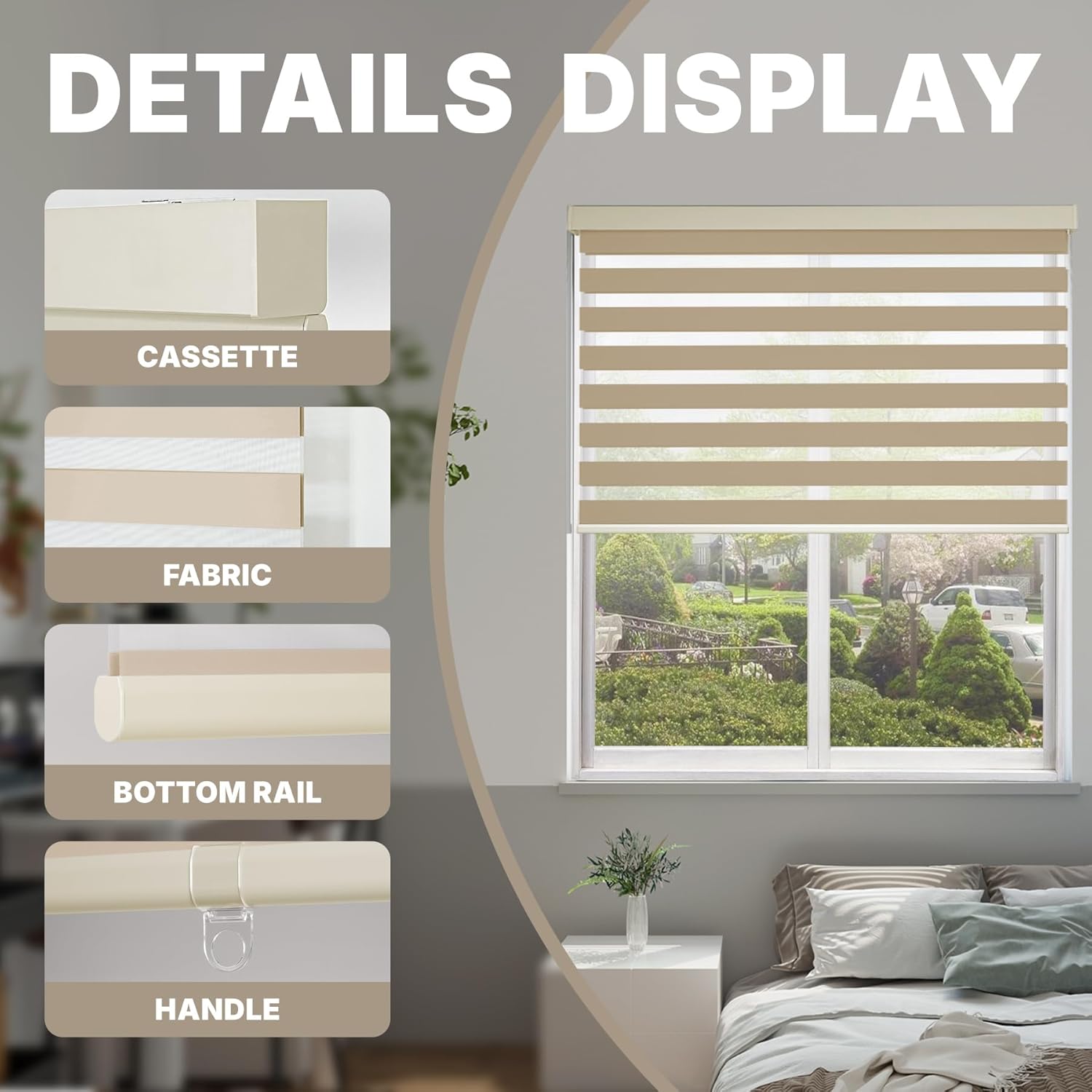 HESTIA Cordless Zebra Blinds Light Filtering Roller Shades UV Blocking Blackout Privacy Indoor Window Shades for Home Office Day and Night, Beige,27" W x 48" H