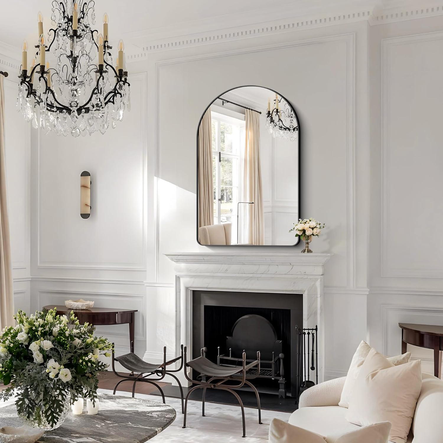 - Widely-Use Decorative Mirror: With black arched mirror round corner and sleek frame, the wall-mounted mirror looks simple and elegant, fits for any decor style and makes room brighter. Great contemporary mirror for wall decor for over sink, bathroom, bedroom, entryway, living room, Gallery, Hotel, Salon and more.