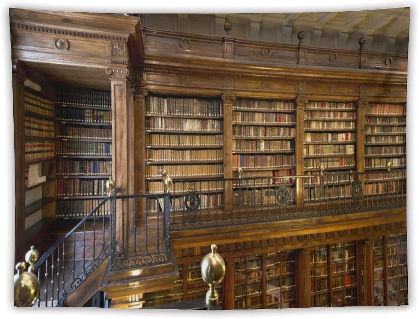 Kurtect Library Tapestry,Vintage Medieval Antique Bookshelf Bookcase Pattern Print Tapestries for Party Beach Picnic Blankets Tablecloths Living Room Wall Deocr, 60x80 in