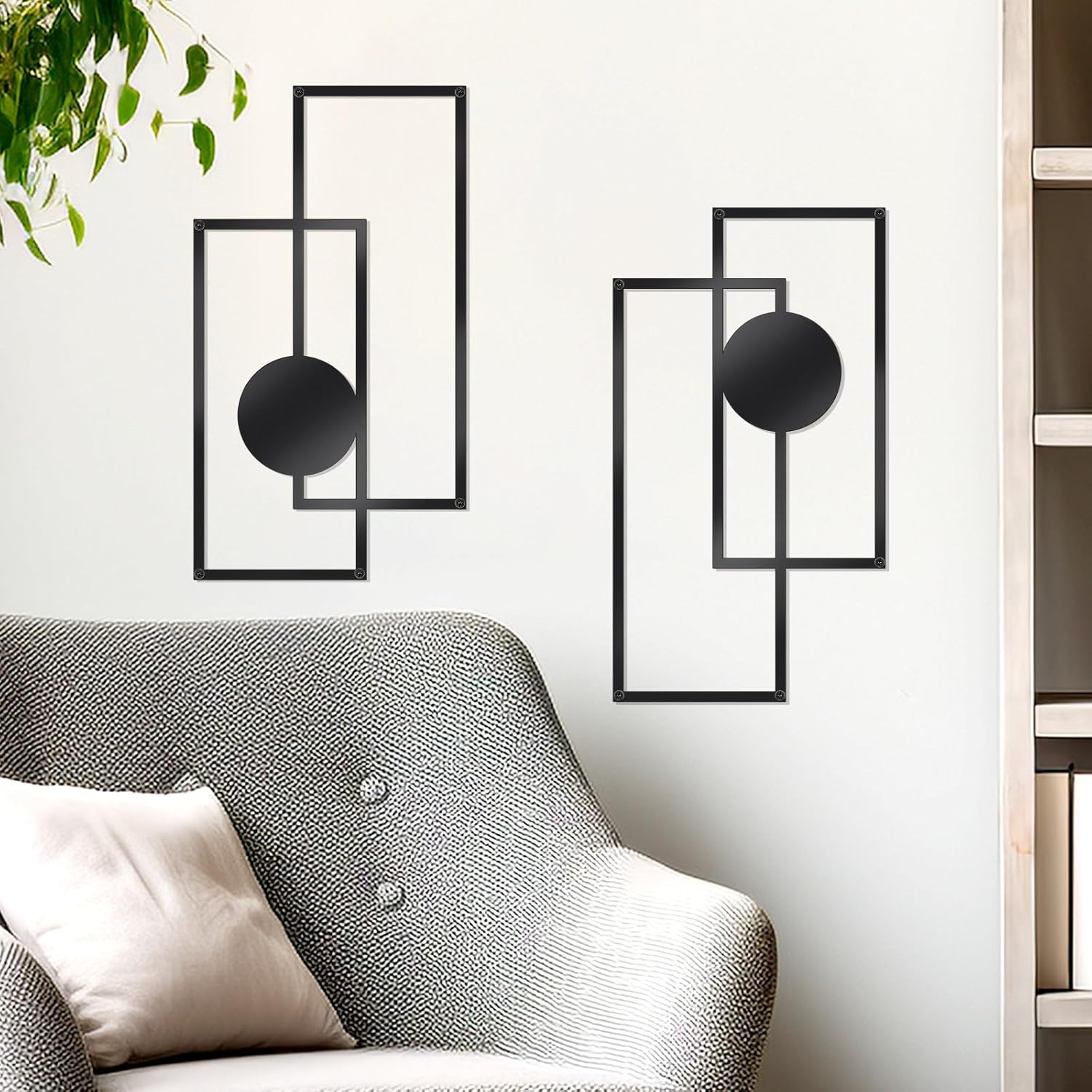 OYEFLY 2 Pcs Metal Abstract Wall Art,Modern Geometric Decor (Black, style 3)