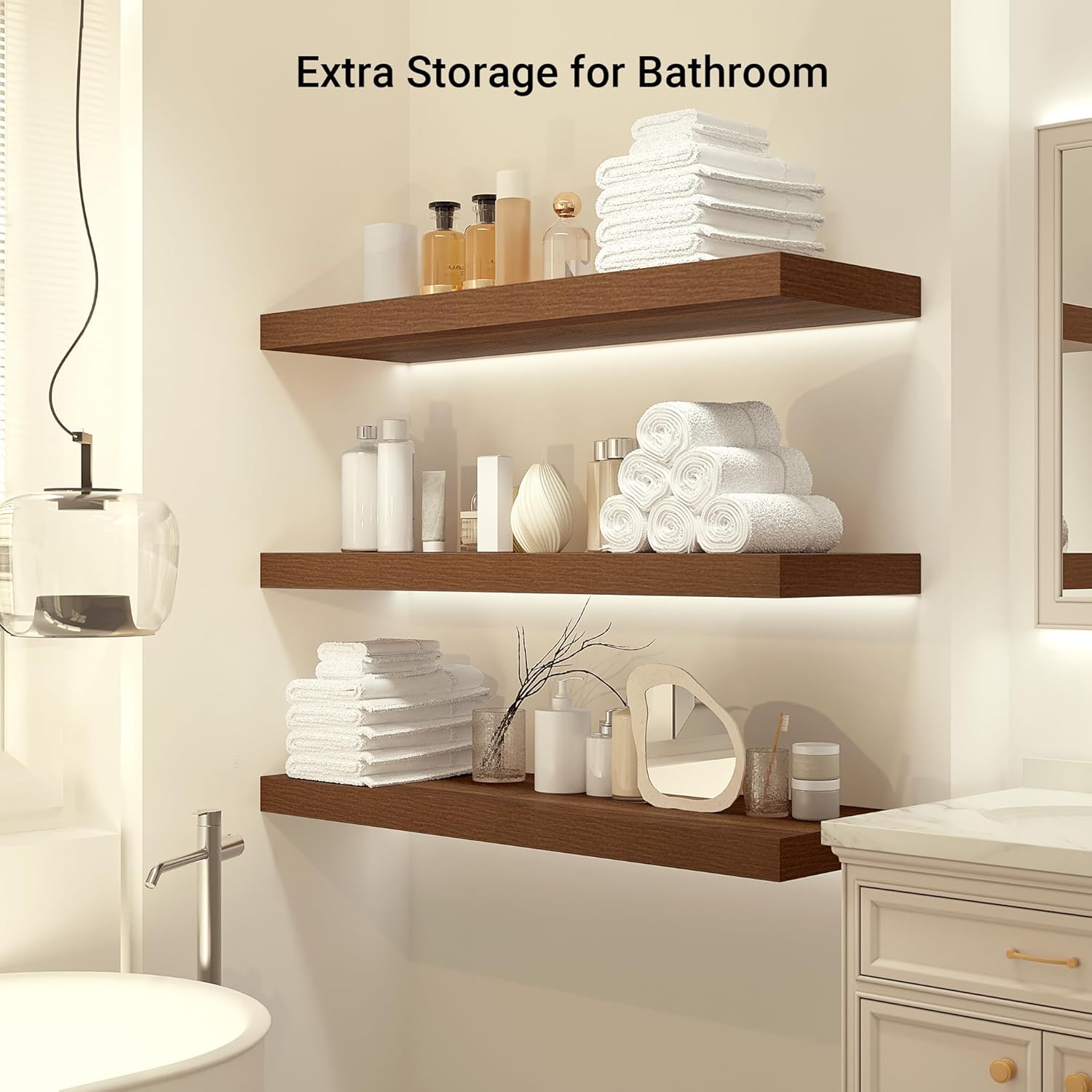 Heimlove 12" Deep Floating Shelves, 36 x 12 Inch Wall Mounted Long Floating Shelf with Invisible Brackets, for Home Decor, Bedroom, Kitchen, Living Room, Bathroom - 1 Pack, Walnut