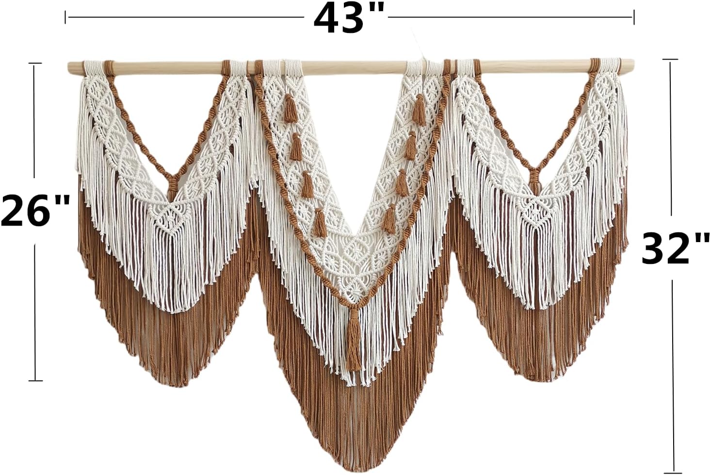 - Easy to assemble: A tapestry of 43''x32'' inches and 3 pieces of spliced wooden Dowel,Three splicing wooden rod are included on the package, so it is easy to splice the three wooden rod screw together to become 1 large macrame piece.