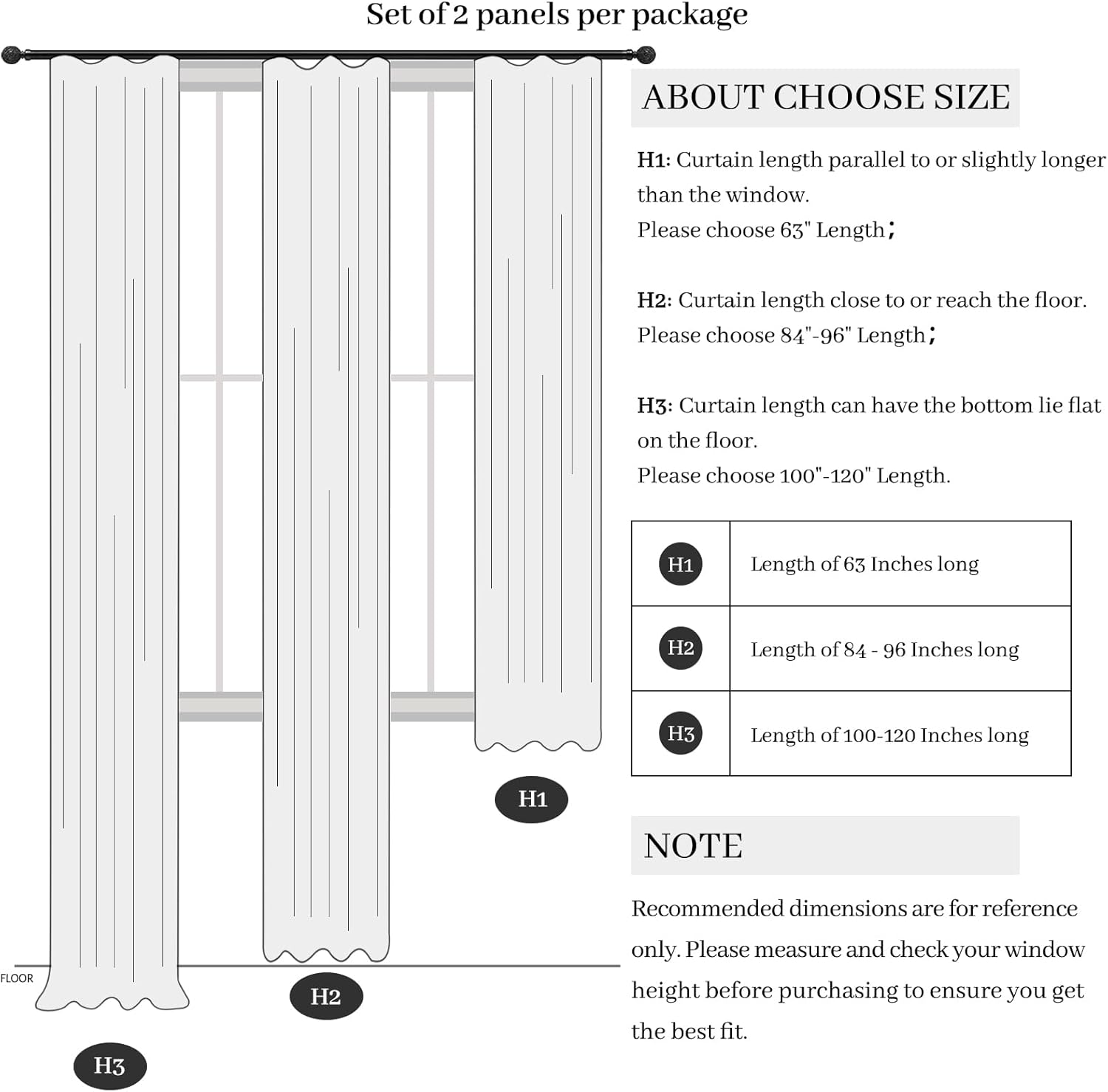 - Ready Made:Set of 2 pinch pleated curtain panels per package with 16 metal rings and 16 adjustable plastic hooks(The adjustable hook can raise and lower the height of the curtain by 1 inch),Each panel measures 40"W x 108"L,pair measures 80"W x 108"L