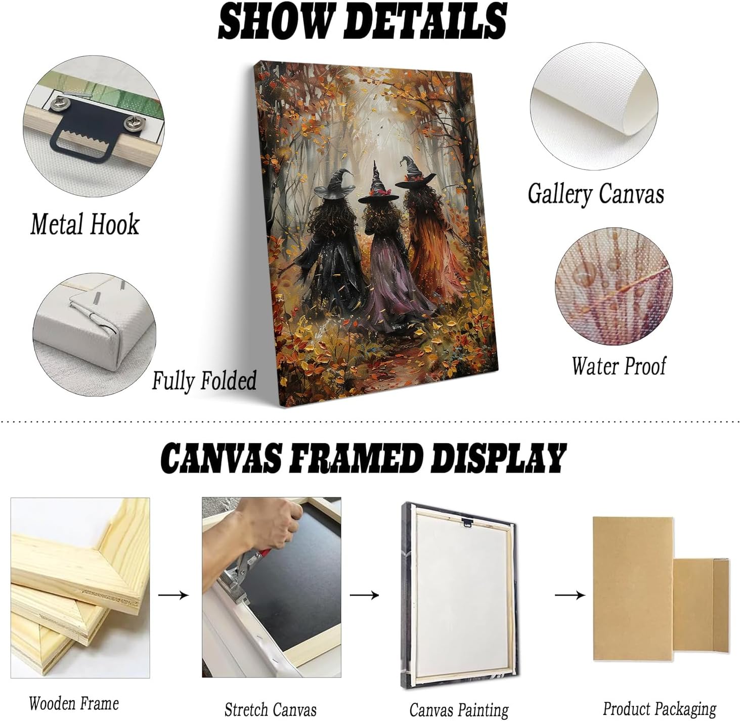 Vintage Three Witches In The Forest Painting Witch Print Witchy Canvas Print Halloween Wall Art Halloween Decor Witch Poster Dark Academia Gothic Room Decor for Bedroom 20x30in Large Frame Wall Art