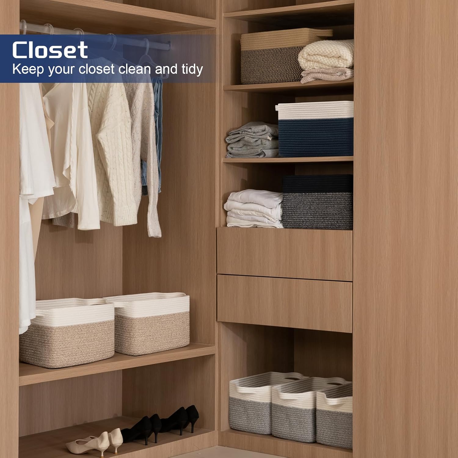 - Stylish Decorative Baskets: Woven storage basket with stylish colors and cute stitching patterns, which can add a touch of elegance to any room decor. It's not just organizing baskets to make your room tidy, but also decorative baskets to beauty your home