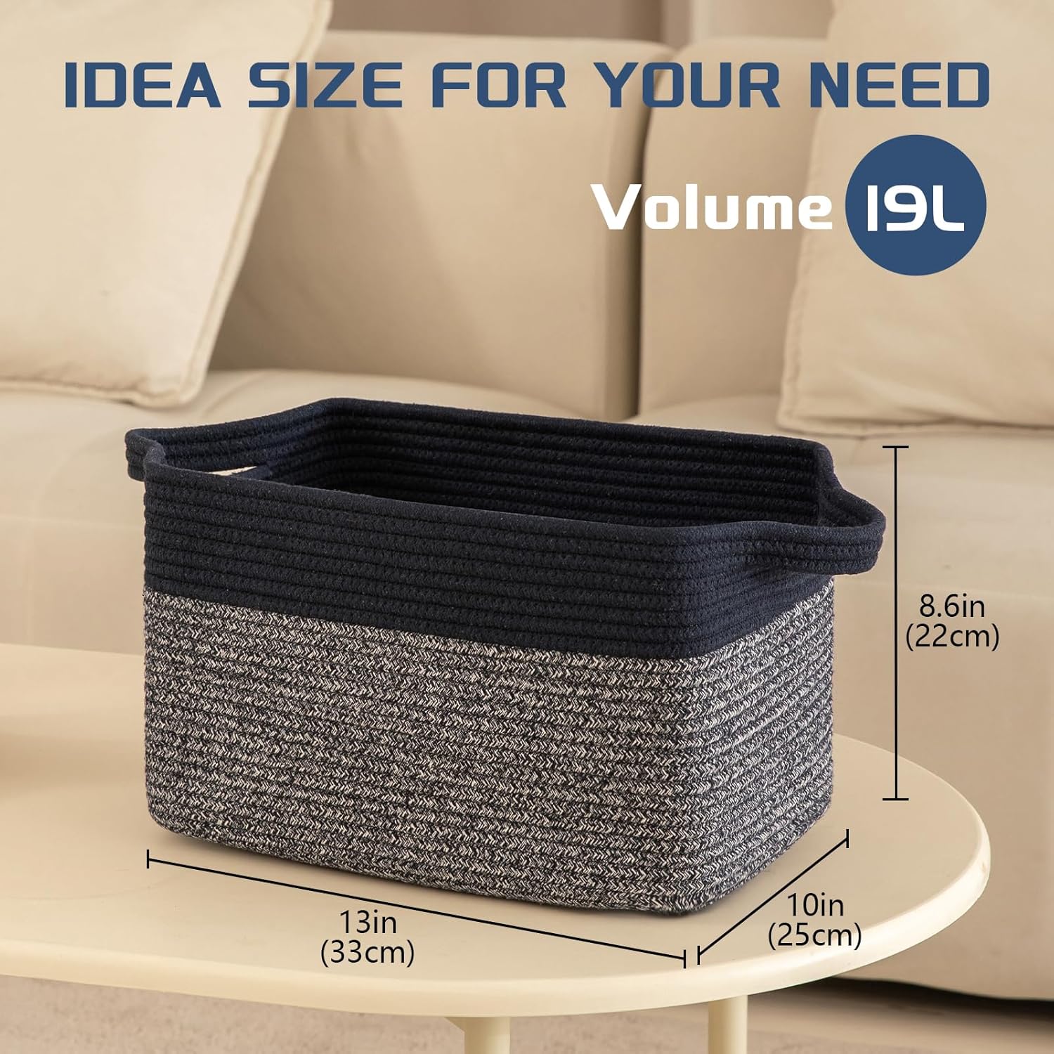 - Multifunctional Storage Basket: 13" x 9.85" x 8.7" shelf basket for organizing, which are designed to fit perfectly on living room, bedroom, bathroom, baby room, office to store household items (towels, toiletries, stuffed animals, books, baby diapers, etc.)