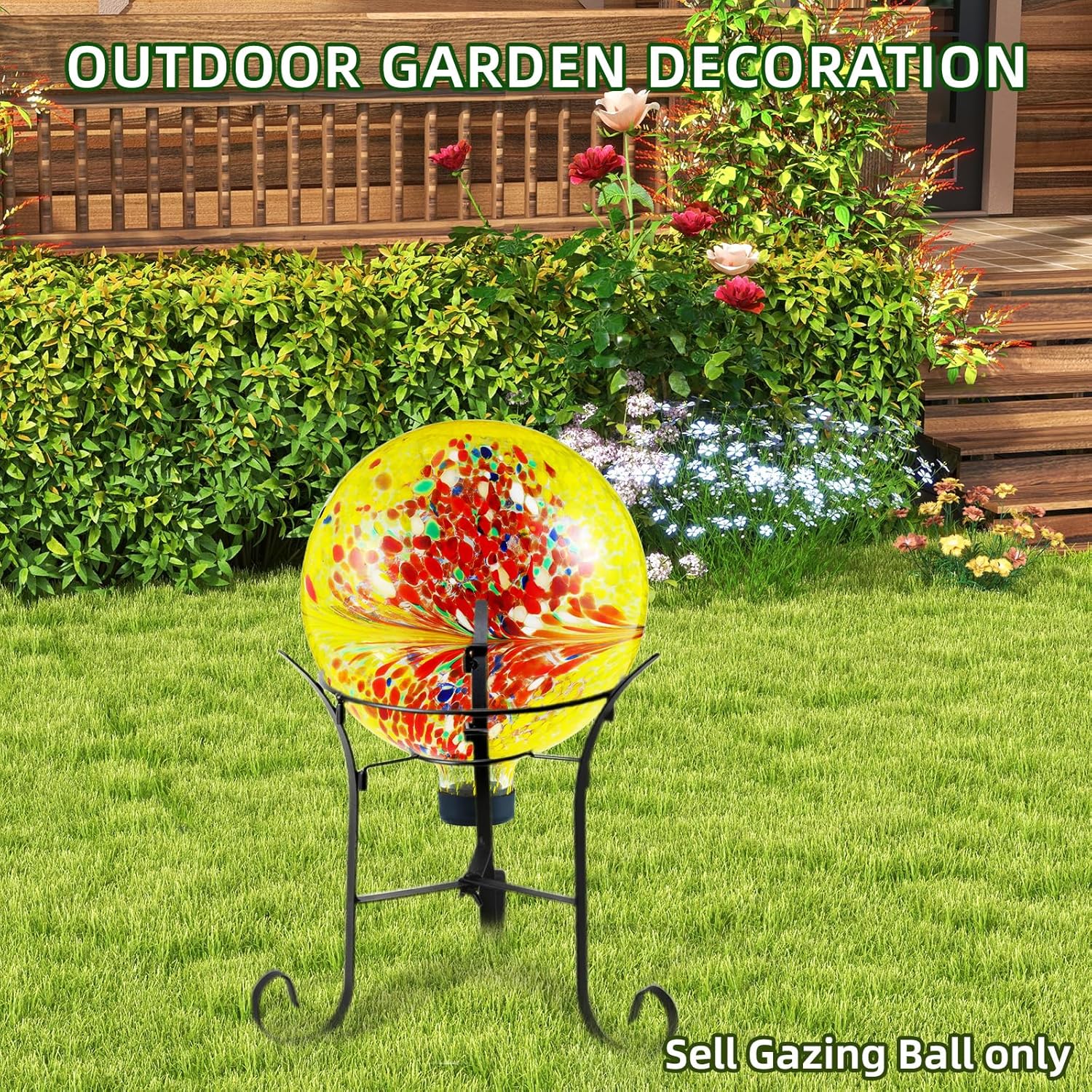 - VERSATILE & STAND-COMPATIBLE. Measuring 10 inches in diameter and 11.5 inches tall, this decorative gazing ball is designed to fit most standard stands (stand not included). A protective rubber cap at the base prevents damage from bumps and vibrations, making it easy to display securely in your garden
