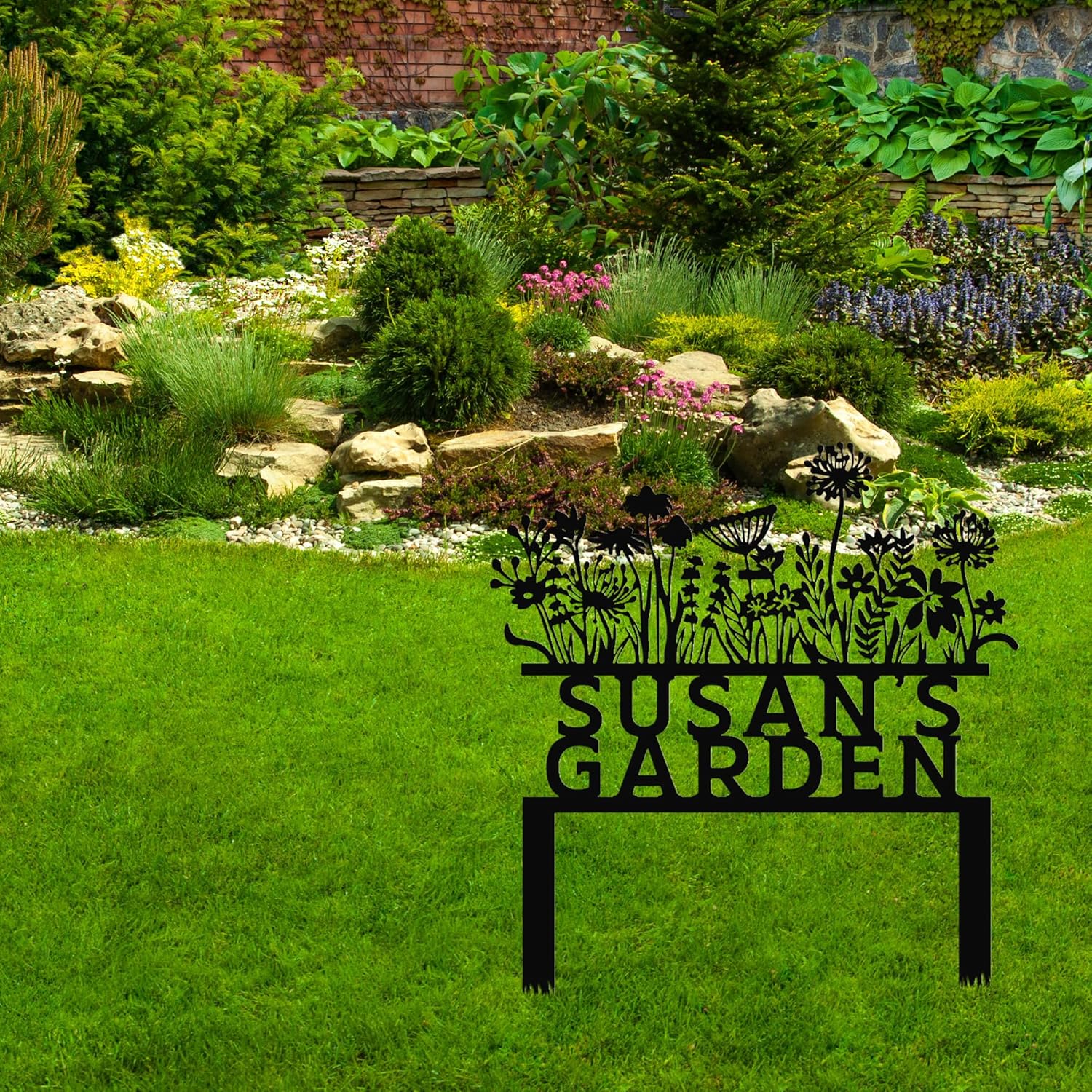 Custom Flowers Metal Garden Decor, Sign for Flower Beds, Personalized Flowers Garden Sign with Stakes, Metal Yard Art, Gift for Grandmother, Patio Decor, Farmhouse Decorations, Mom Gift