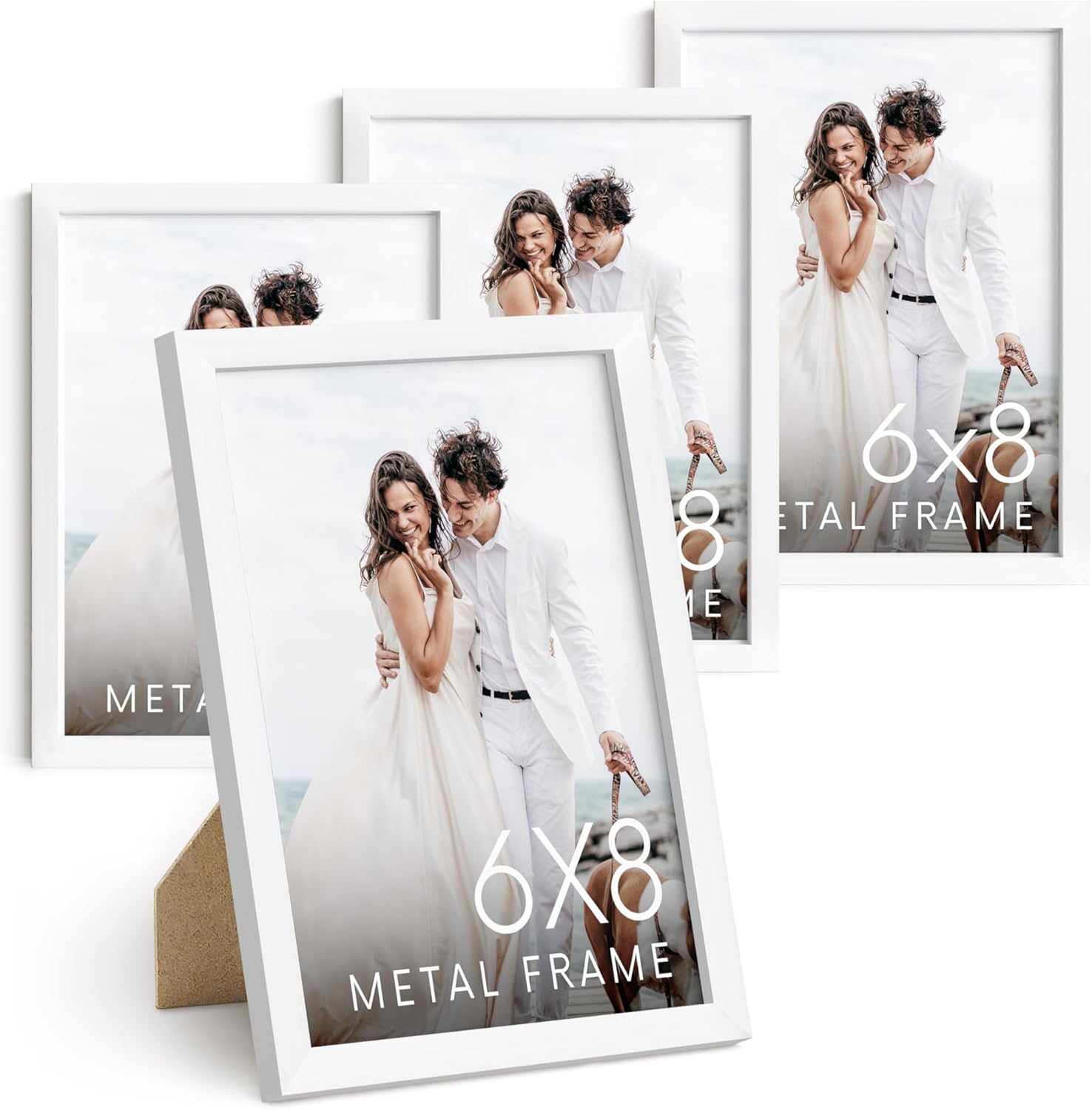 - A THOUGHTFUL GIFT: Our 6x8 frames set of 4 will make an artful gift for friends and family. Give your loved ones this picture frames 6x8 white for a birthday, housewarming, graduation, Christmas, or any special occasion. The 6x8 picture frames set of 4 will display their favorite memories and add a personal touch to any space.