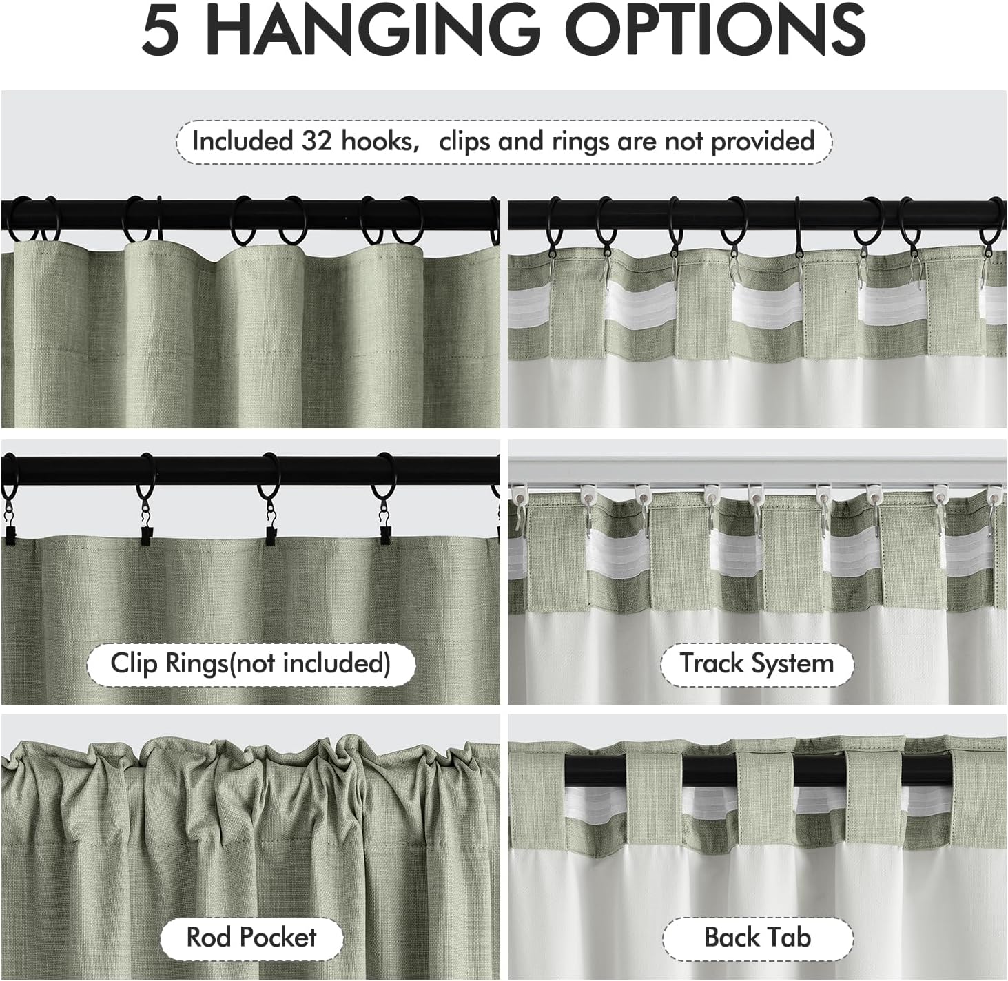 - VERSATILE HANGING OPTIONS: Choose from four hanging styles: back tabs, rod pockets, small hooks on the hook belt, or ring clips (ring clips not included). Quick and easy to install, tailored for your convenience.