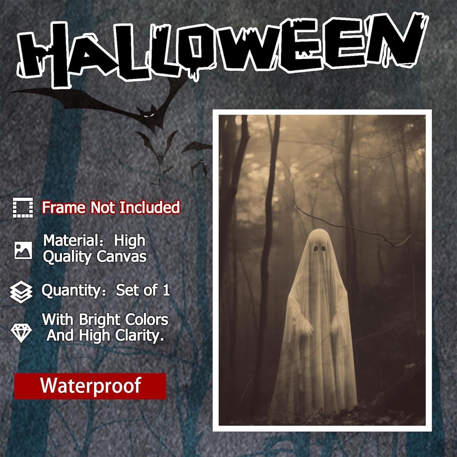 Ghost Forest Spooky Print Poster The Gothic Room Decor Creepy Picture Posters Dark Academia Aesthetic Family Prints Canvas Wall Art Home Apartment Decorations 16X24inch Unframed