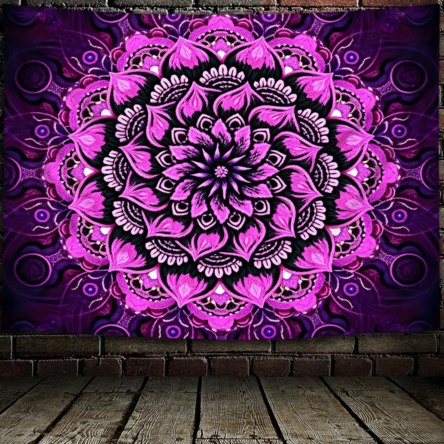 Psyhilar Blacklight Mandala Tapestry Wall Hanging, Psychedelic Flower Black Light Posters for Adults and Teens, UV Reactive Aesthetic Bohemian Art for Bedroom (80 x 60 Inches)