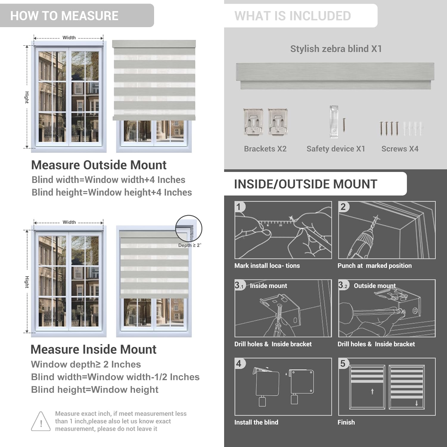 Cordless Zebra Blinds for Windows, Blackout Interior Blinds,Easy to Install,UV Protection,for Offices and Home,Custom Roller Shades, Mousse Beige,34" W x 36" H