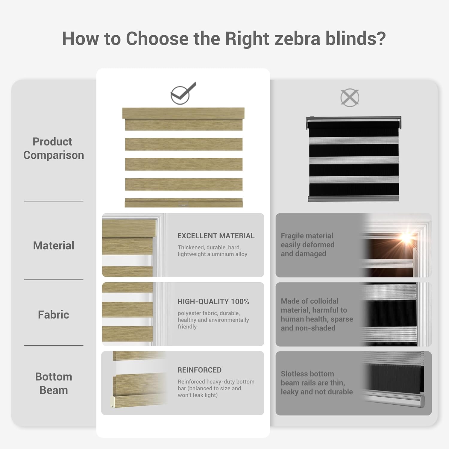 Cordless Zebra Blinds for Windows, Blackout Interior Blinds,Easy to Install,UV Protection,for Offices and Home,Custom Roller Shades, Mousse Light Bown,30" W x 64" H