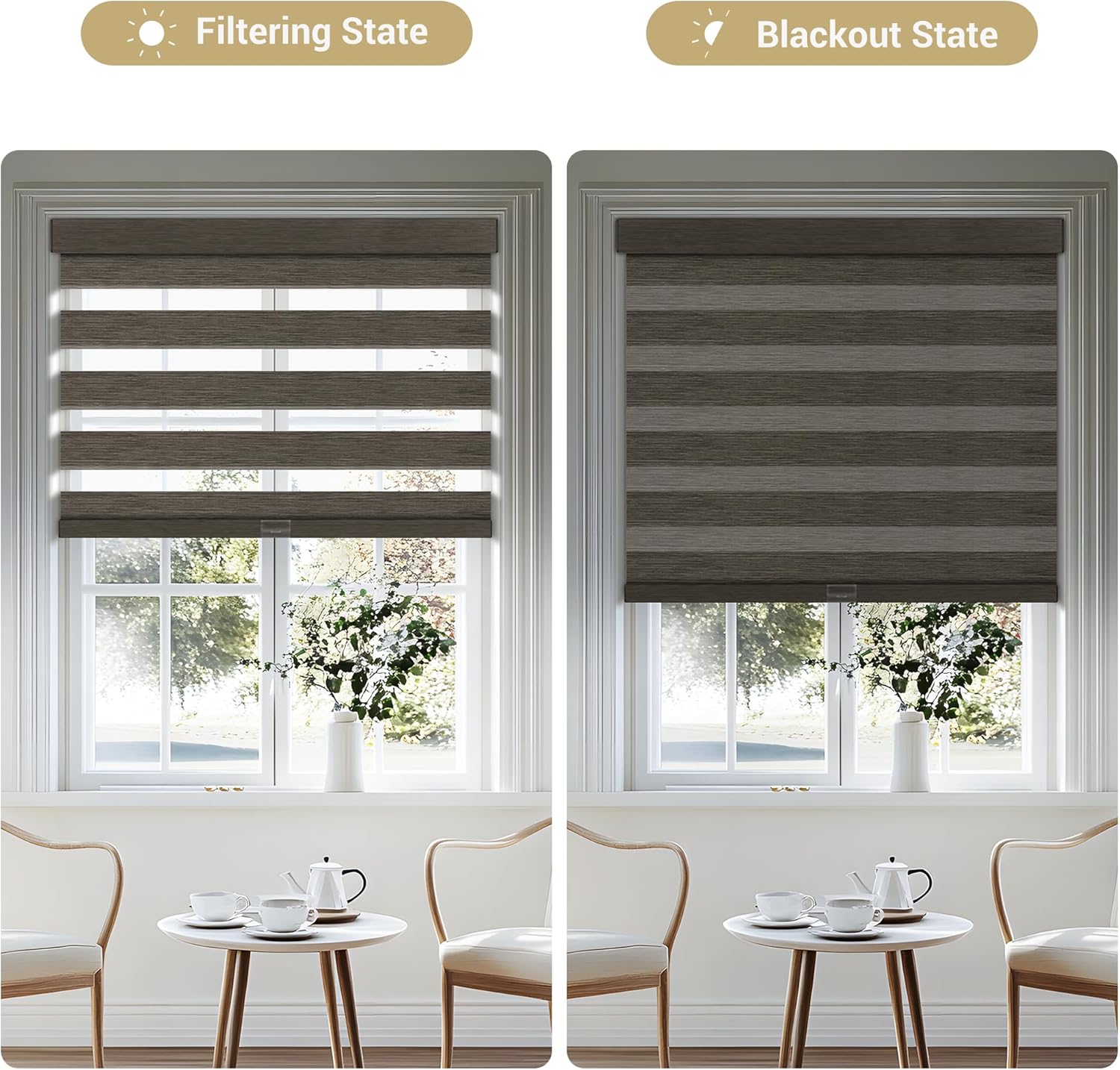 Cordless Zebra Blinds for Windows, Blackout Interior Blinds,Easy to Install,UV Protection,for Offices and Home,Custom Roller Shades, Mousse Dark Bown,26" W x 72" H