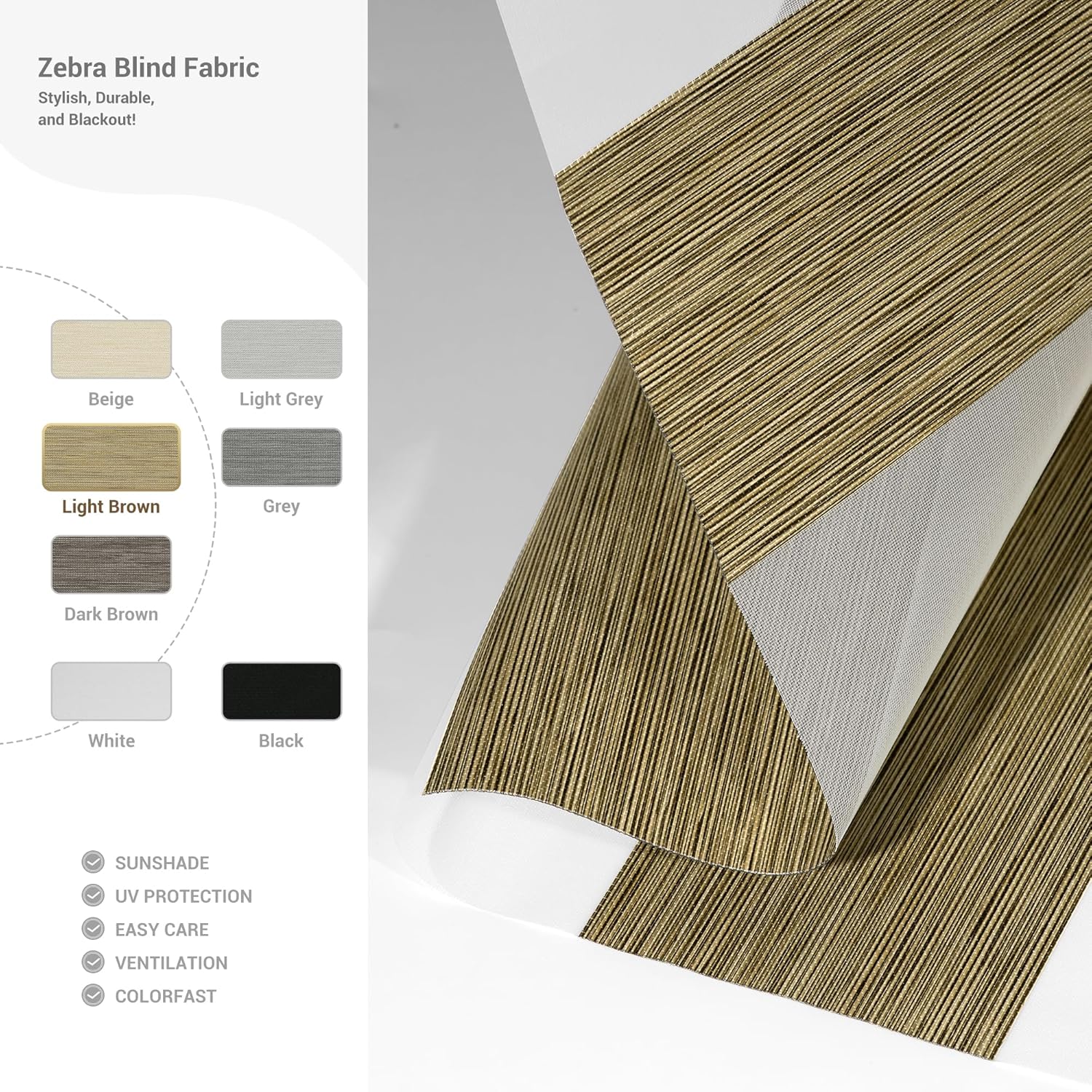 Cordless Zebra Blinds for Windows, Blackout Interior Blinds,Easy to Install,UV Protection,for Offices and Home,Custom Roller Shades, Mousse Light Bown,65" W x 56" H