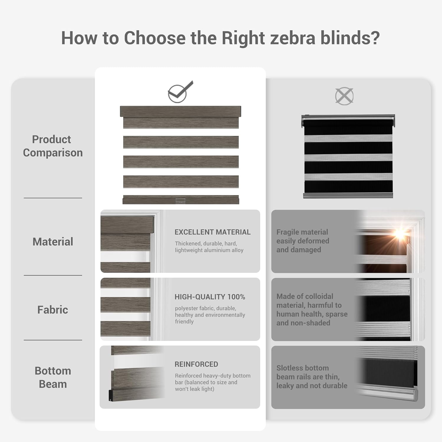 Cordless Zebra Blinds for Windows, Blackout Interior Blinds,Easy to Install,UV Protection,for Offices and Home,Custom Roller Shades, Mousse Dark Bown,21" W x 56" H