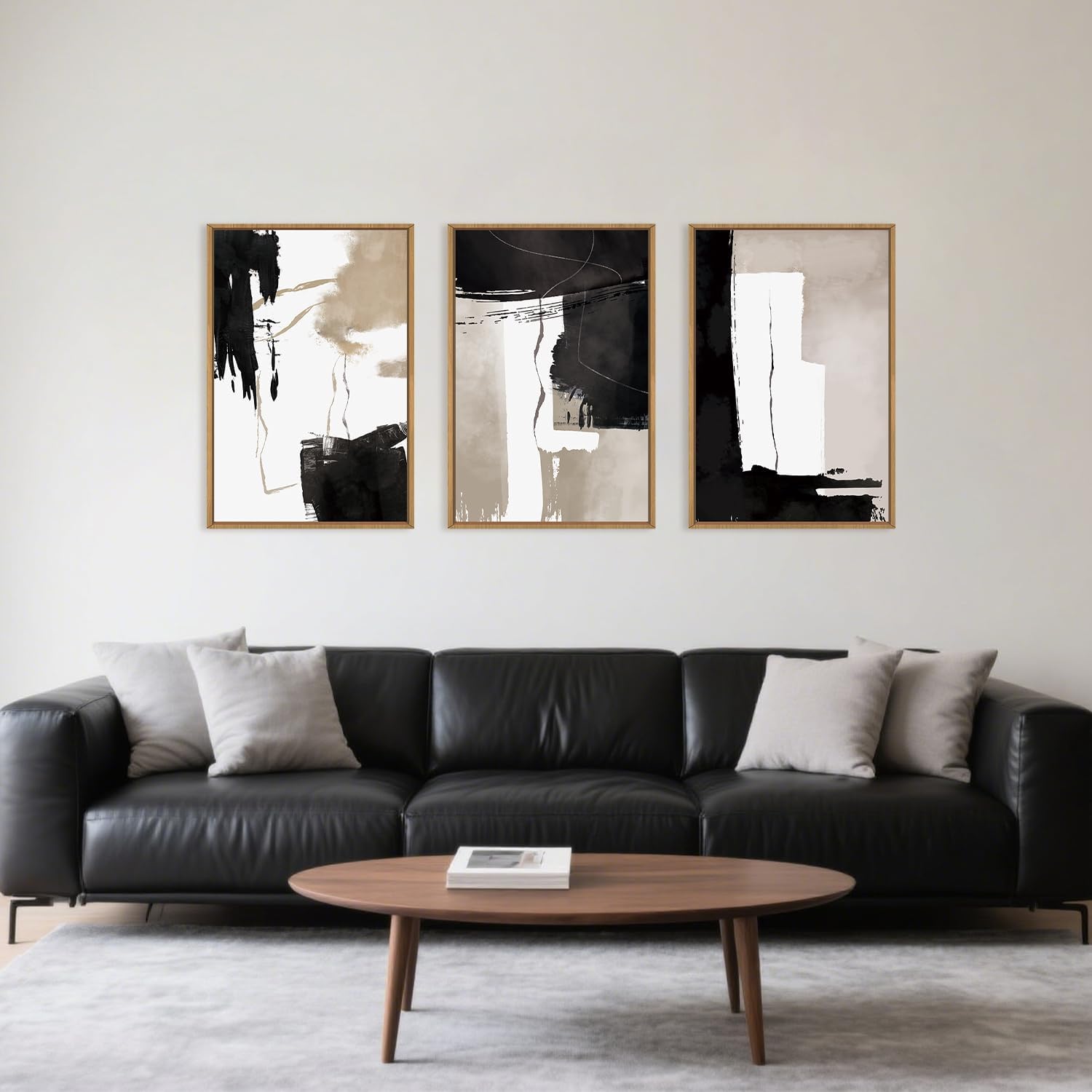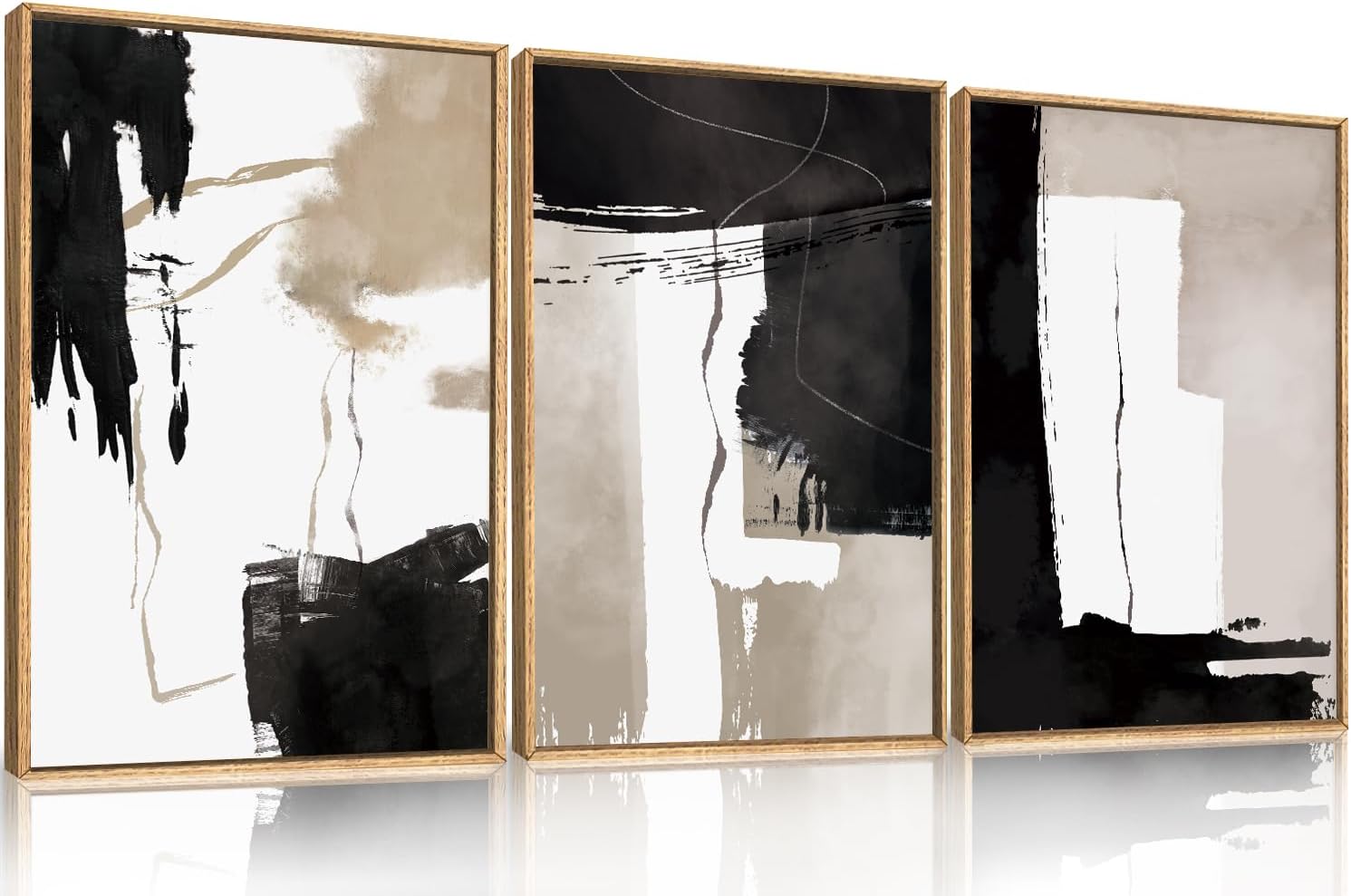 - 【Abstract Wall Art】This modern abstract framed canvas wall art set is a favored selection among those looking to boost the visual attractiveness of their interior spaces. The artwork predominantly features black, white, and brown, which together form a well-proportioned and cohesive visual pattern. No matter if you decide to mount this piece in your living area, sleeping quarters, or professional space, its non-representational design and neutral hues can add to a soothing and aesthetically satisfying ambiance.