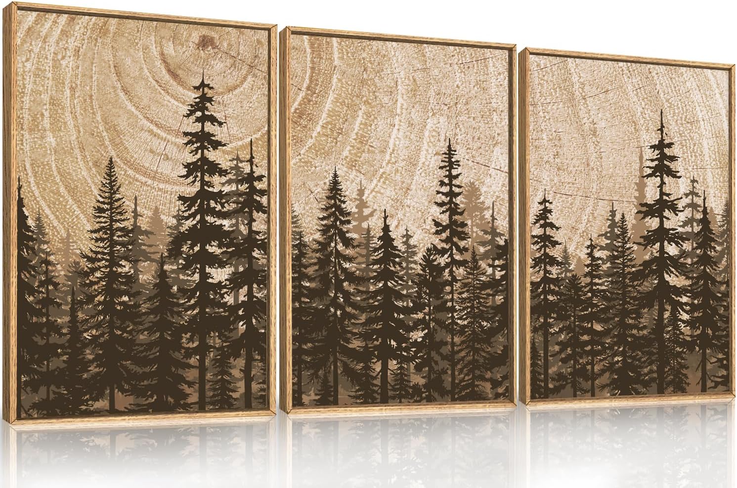 Pine Tree Framed Canvas Wall Art Set, Natural Woodland Landscape Wall Decor, Large Retro Forest Painting, Vintage Brown Artwork for Living Room, Bedroom, Kitchen, Study, Office - 16"x24"x3