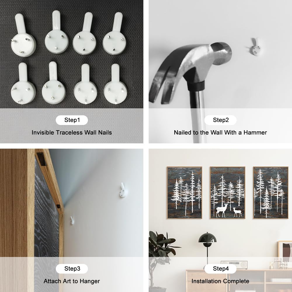 - 【White Forest Wall Art】This forest animal decor art set is a favored selection among individuals seeking to augment the aesthetic charm of their living quarters. The piece showcases a monochrome color scheme that evokes a jungle vibe against a wooden backdrop, culminating in a harmoniously balanced and deeply moving visual theme. Regardless of whether you opt to display this artwork in your lounge, sleeping quarters, or workplace, its composition and hues will contribute to a tranquil and visually gratifying environment.
