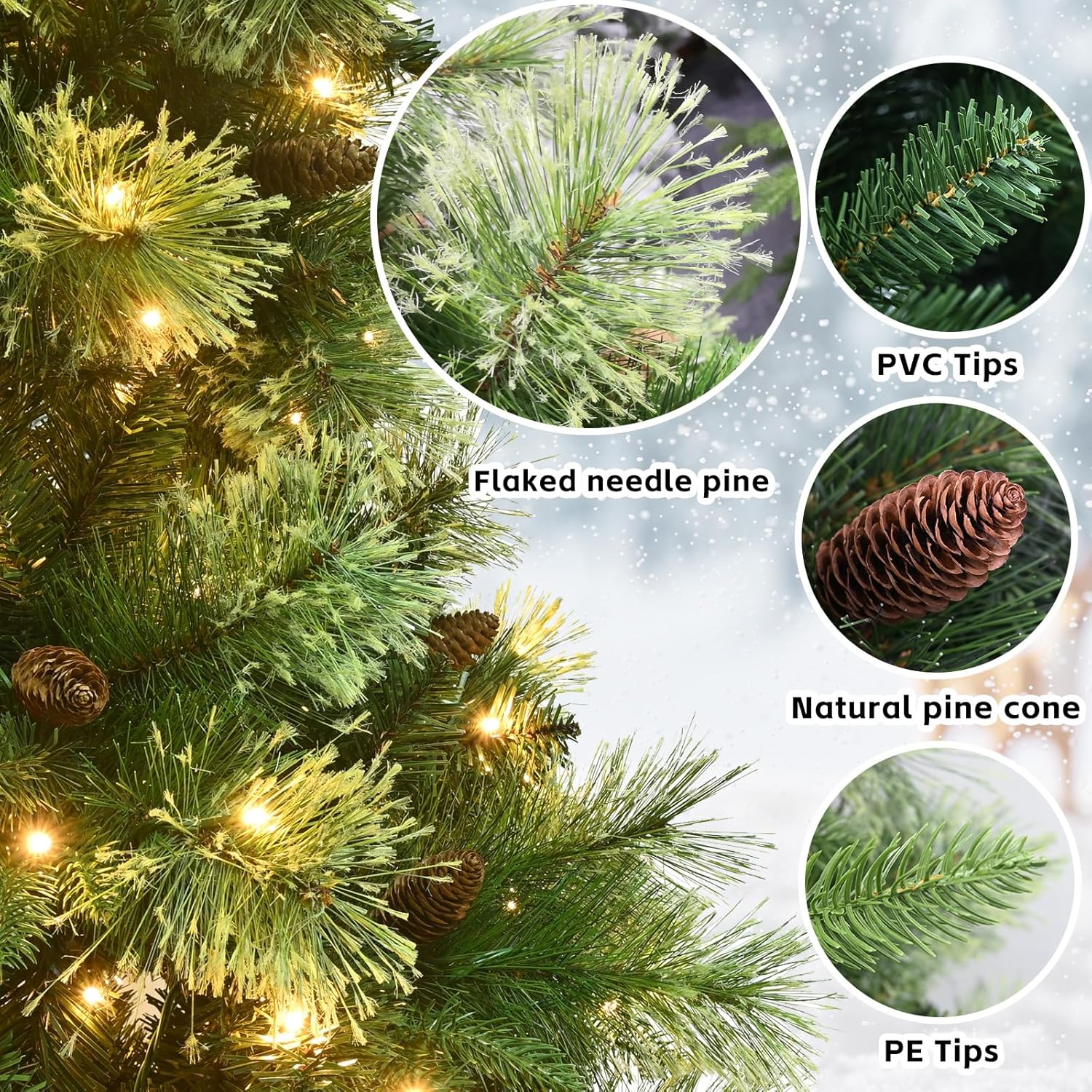 - Artificial Carolina Pine Tree:This 7.5 feet Artificial Carolina Pine Christmas tree features 1645 individually crafted branch tips,which is made of a premium blend of PE and PVC and pine needles, and come pre-decorated with natural pine cones. The unique design of different branches make this artifical Christmas tree looks very diverse, full, and realistic.