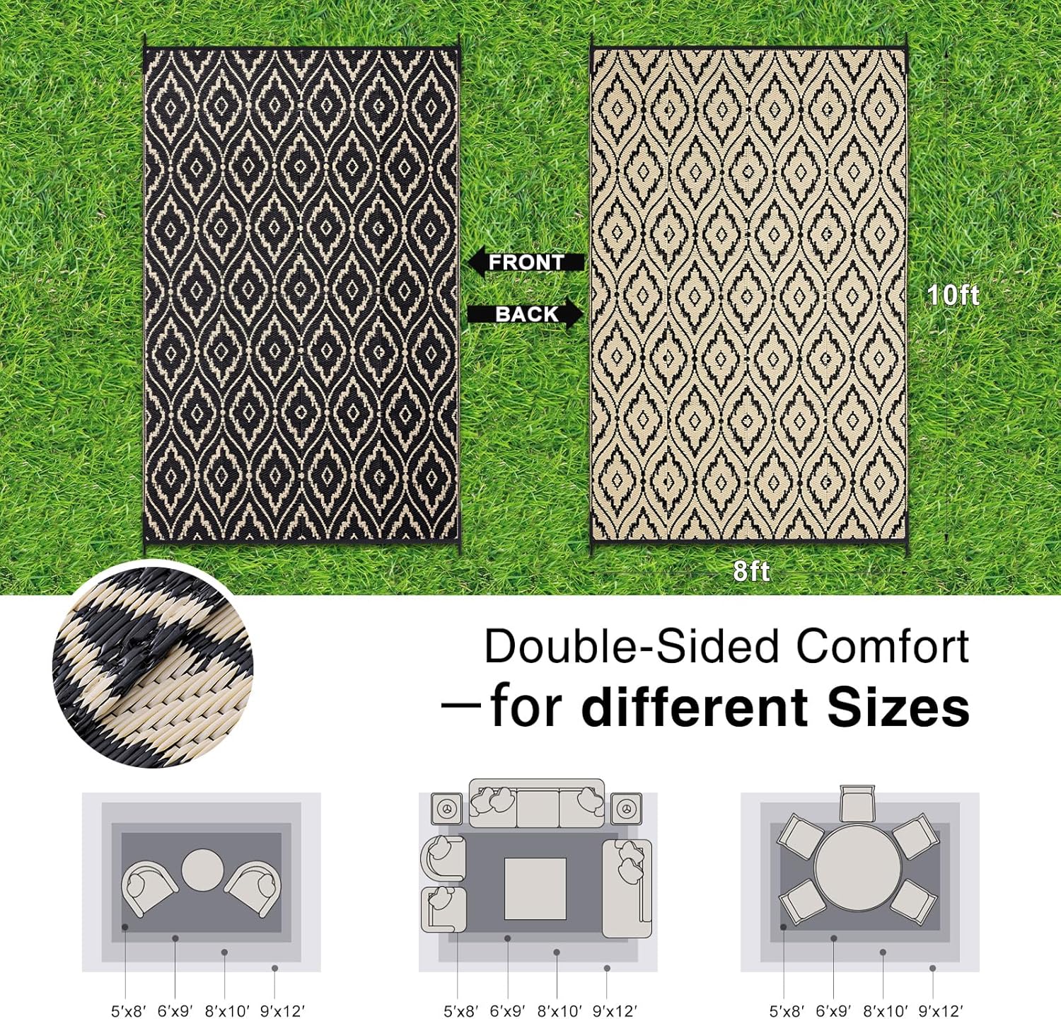 - Lightweight & Portable: These foldable, lightweight outdoor rugs are incredibly easy to transport. Take them to picnics, lawn parties, or camping trips without hassle, ensuring comfort and style wherever you go.