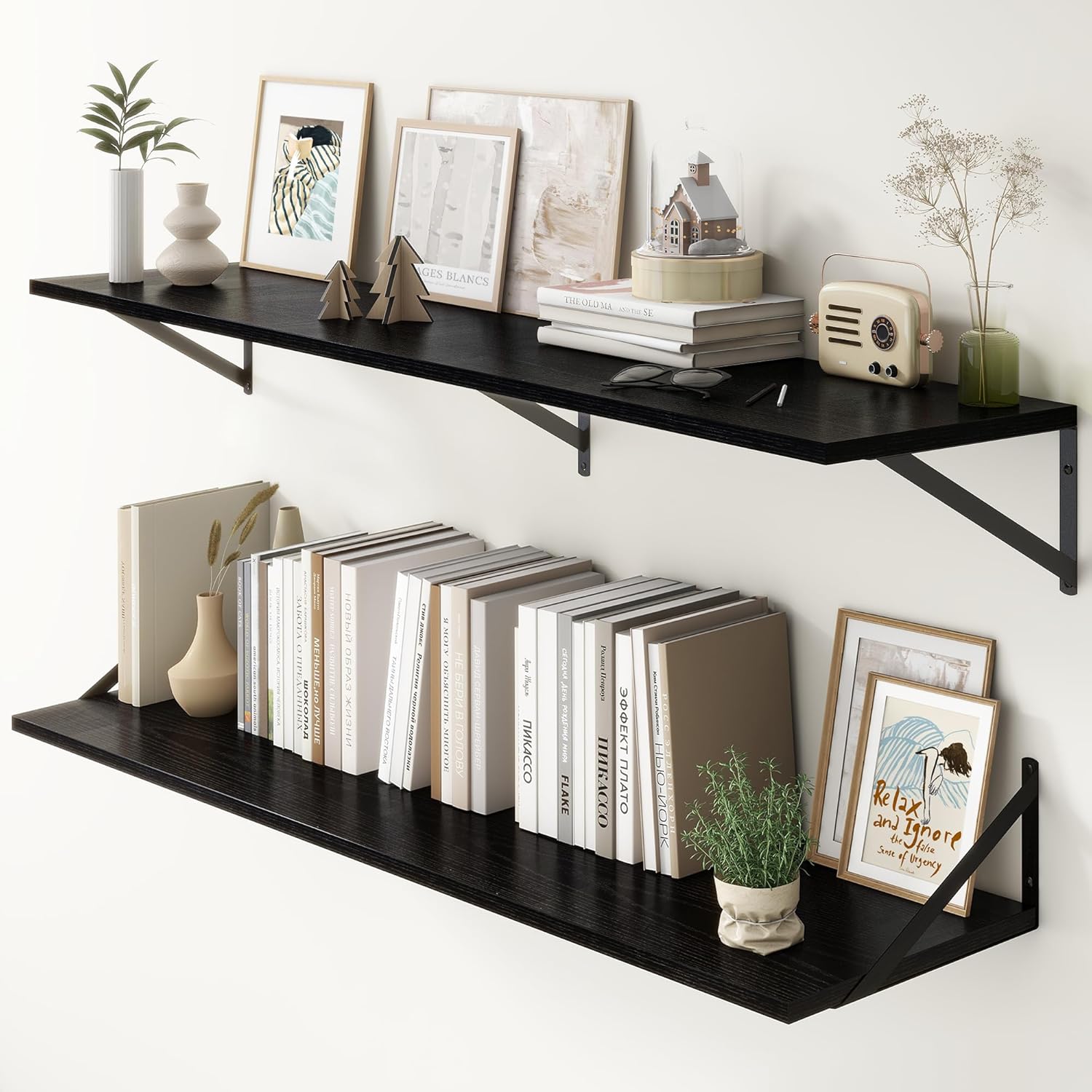 Fun Memories Deep Floating Shelves, 55W x 12D Floating Shelves for Wall, Wood Black Floating Shelf with Bracket, Wide Display & Storage Wall Shelves for Living Room, Bedroom,