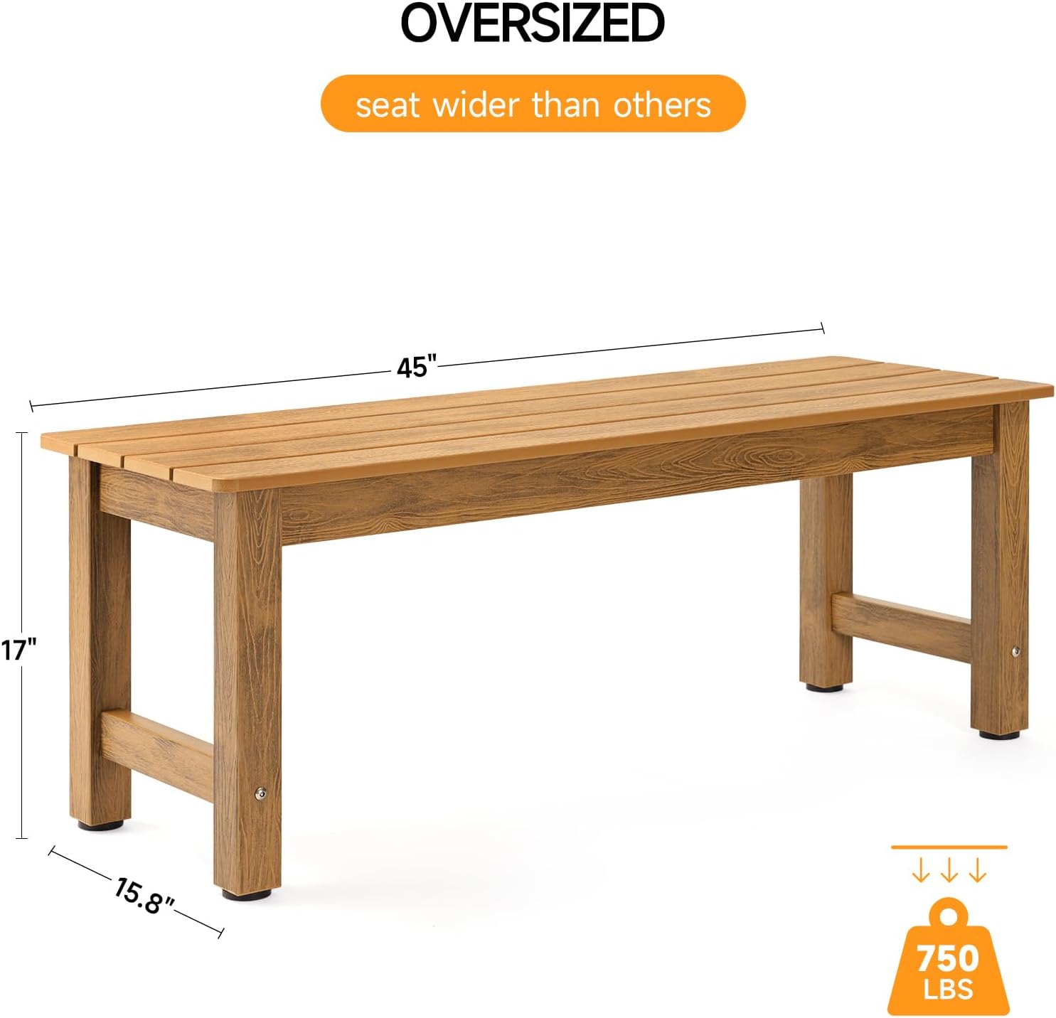- ăJust Like Real WoodăONBRILL garden bench adopts unique wood-like color technology, it isn't easy to distinguish between our products and high-grade solid wood. HDPS patio benches are recyclable and more durable than regular wooden chairs. It's an outdoor furniture worth investing in.