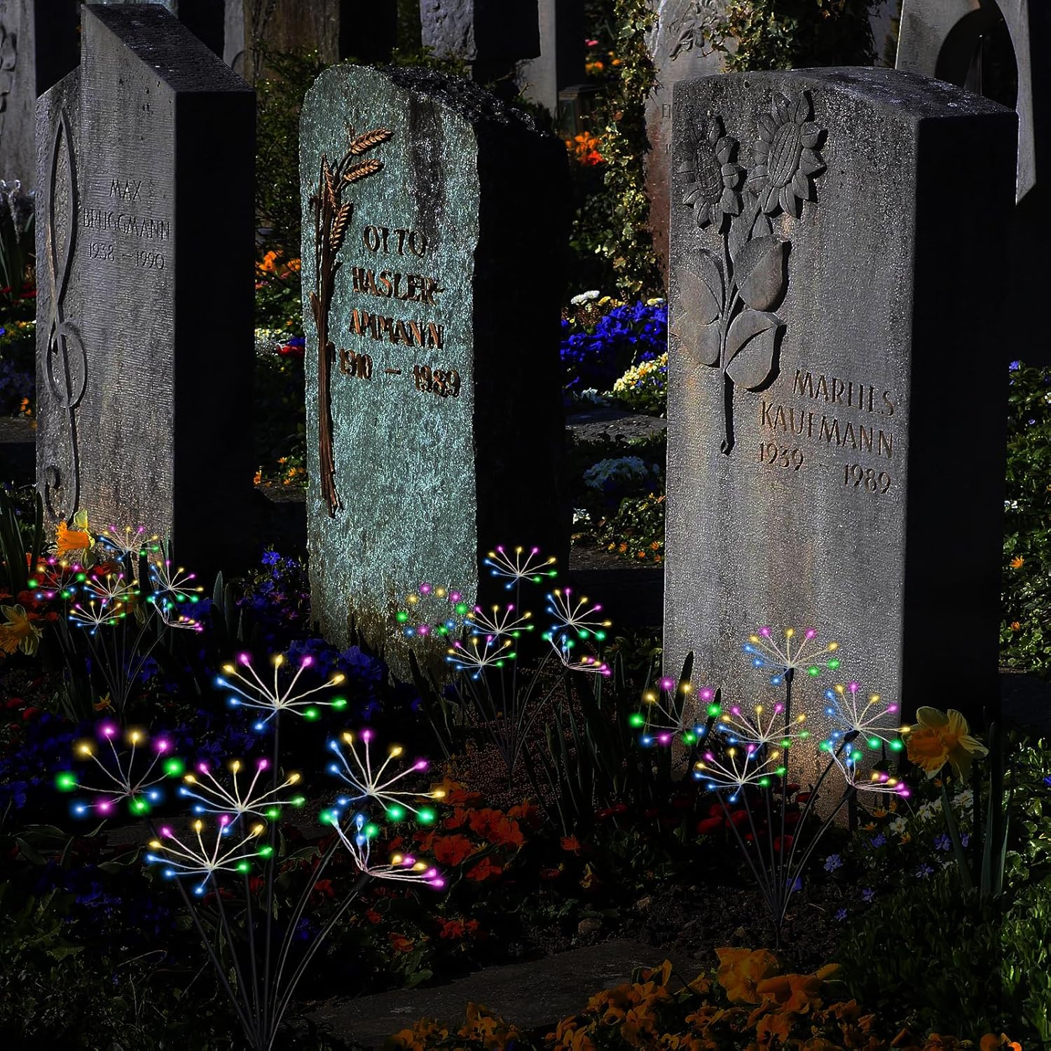 - 【2 Lighting Modes Decorative Solar Lights】Kwaiffeo outdoor solar lights for yard decorative designed with 2 light modes : Twinkling flash and steady-on, which creates a cosy vivid and beautiful atmosphere for your outdoor decoration. This patio lights definitely suit being in shrubbery or longer grass , the corner lot and plants perfectly. Great for garden decor, yard decor,patio decor, lawn decor, fall decor, porch decor or as grave decorations for cemetery.
