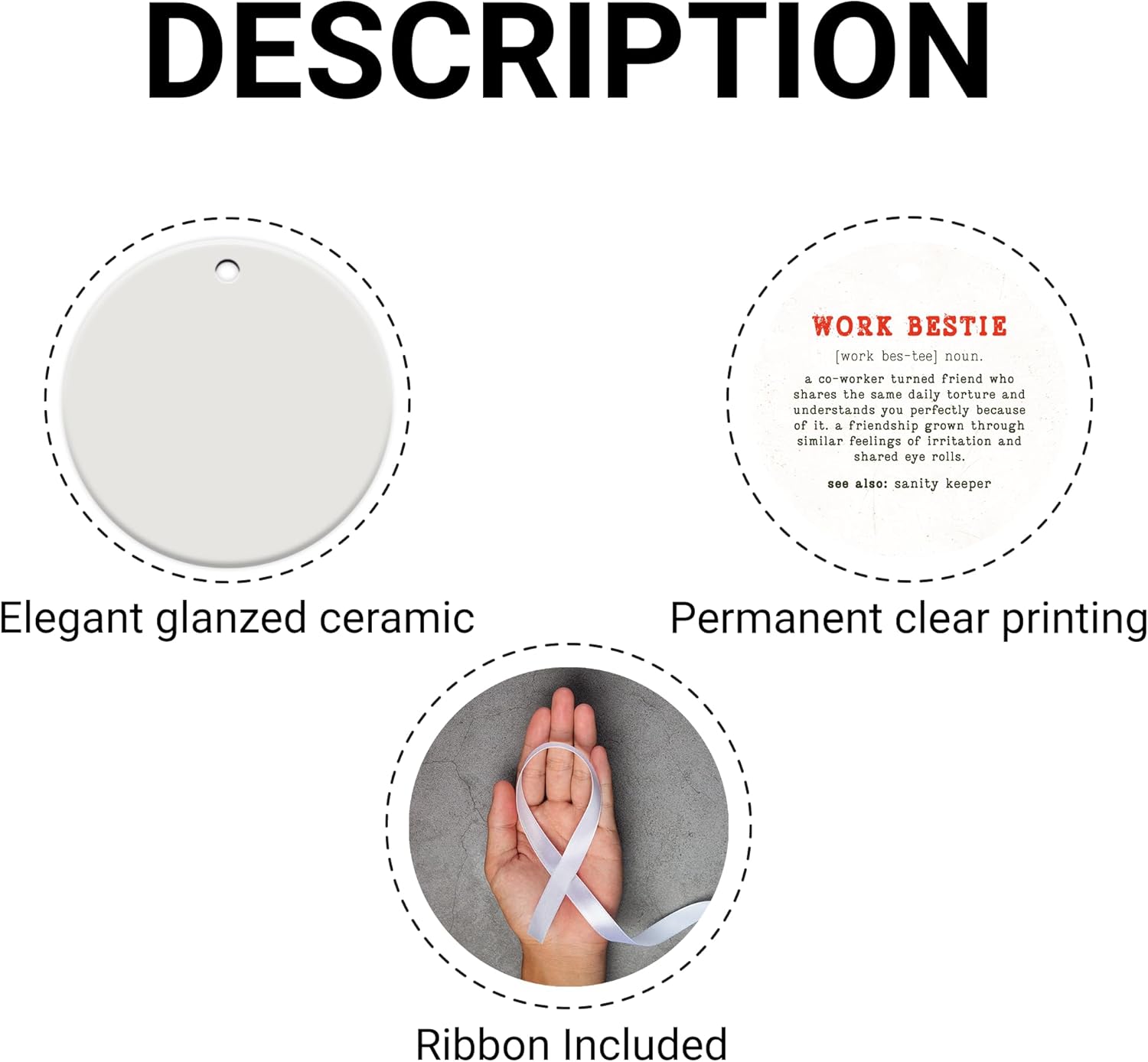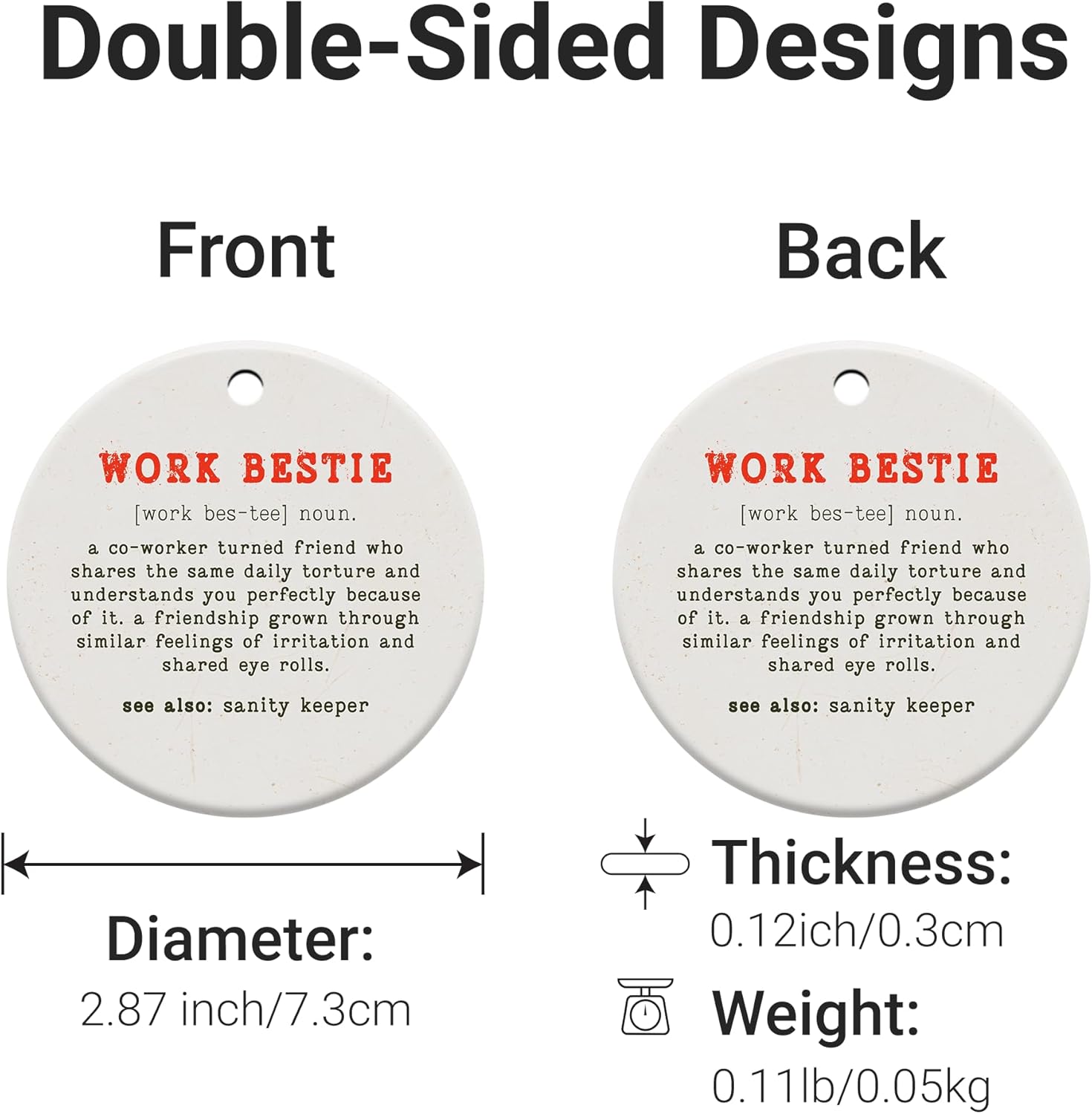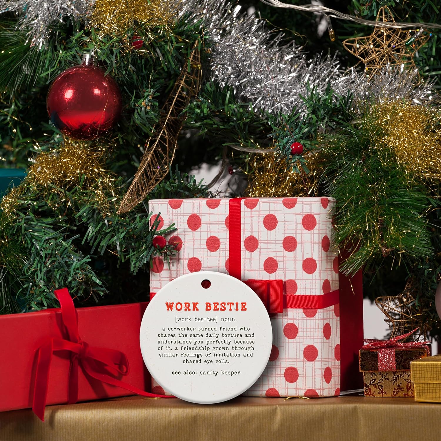 Friendship Gifts for Women, Best Friend, Funny, Work Besties, Sister, Friend Ornaments for Women, Ceramic Christmas Ornaments (Work Besties)