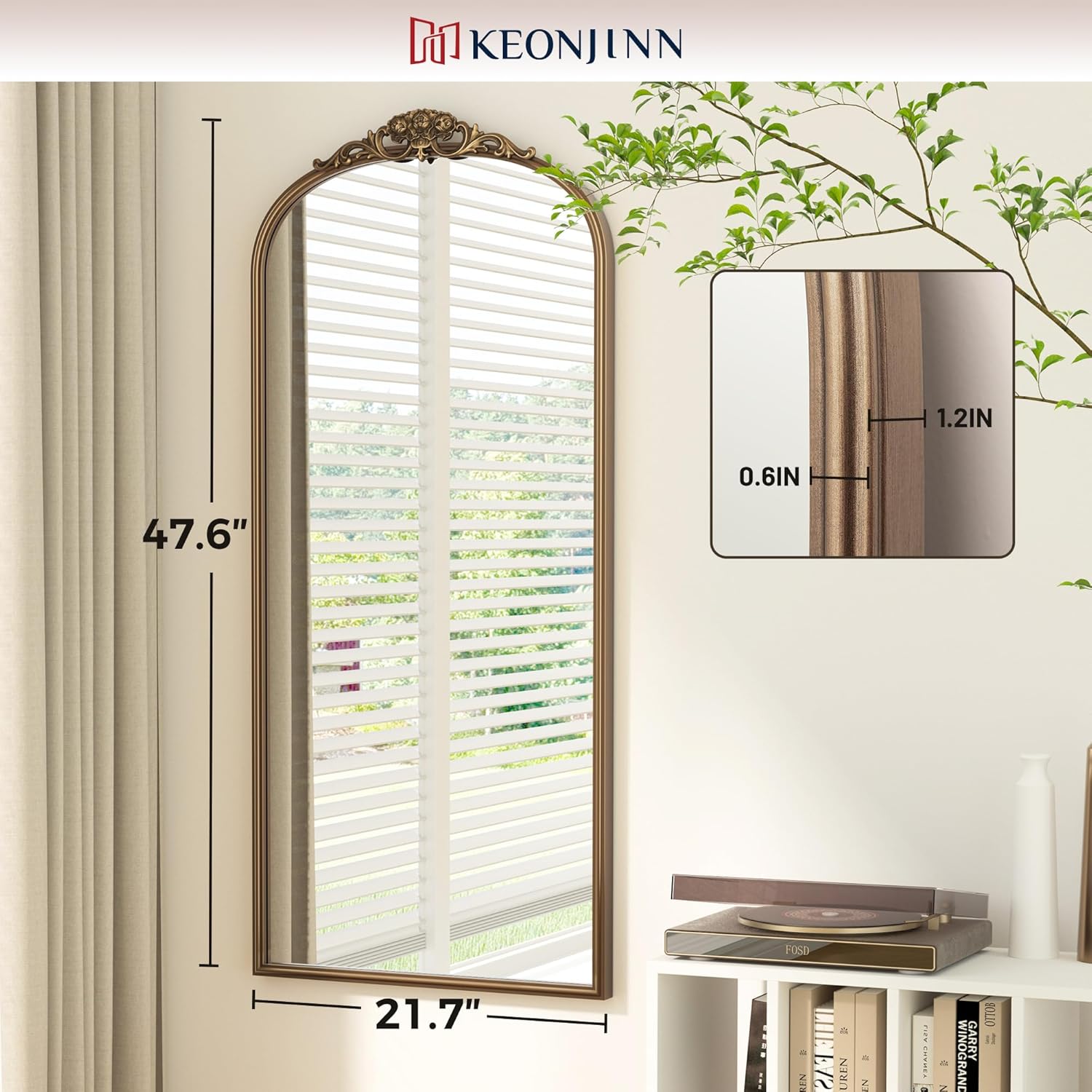 - 【Baroque-inspired Charm】 Keonjinn Antique Arched Mirror is a timeless piece designed to elevate your wall décor. Inspired by the opulence of the Baroque era, this mirror exudes historical charm with its graceful arched design and intricate wooden floral crown, creating a captivating focal point in any room.
