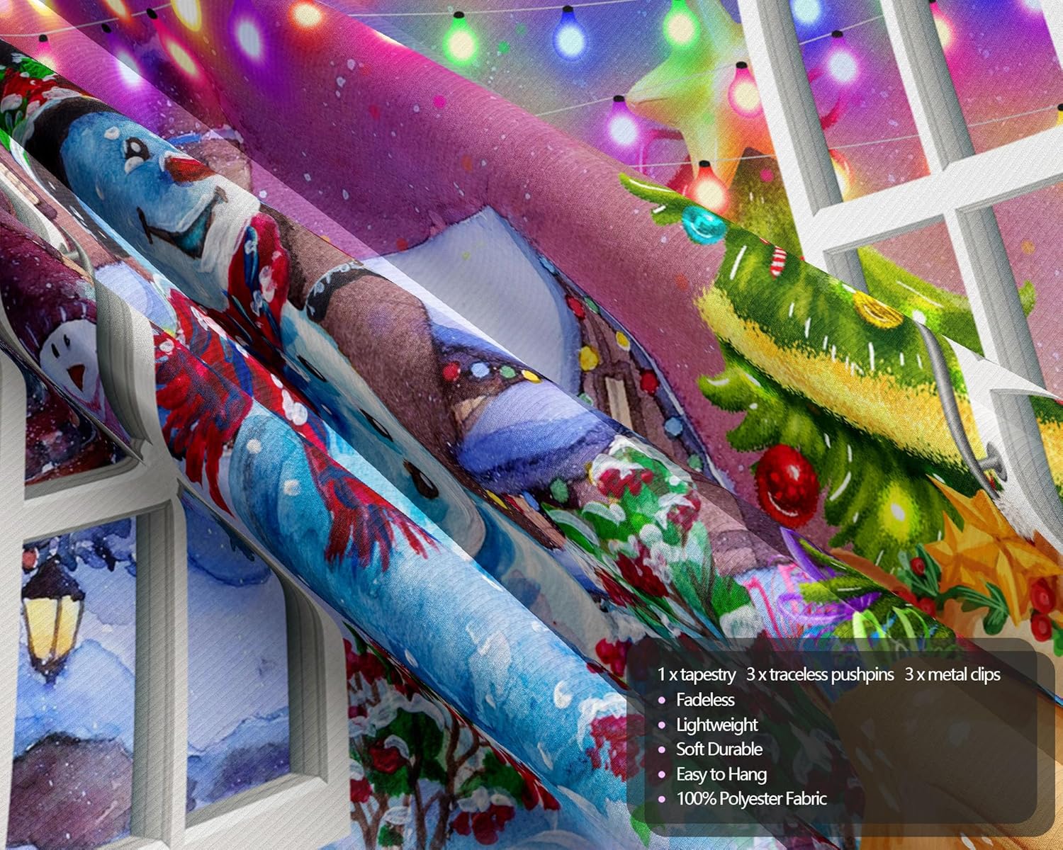 QGHOT Christmas Window Tapestry Wall Hanging, Christmas Backdrop Winter Window Wall Decor Xmas Snowman Deer Tapestries for Bedroom Living Room Dorm Holiday Party Decoration, Large