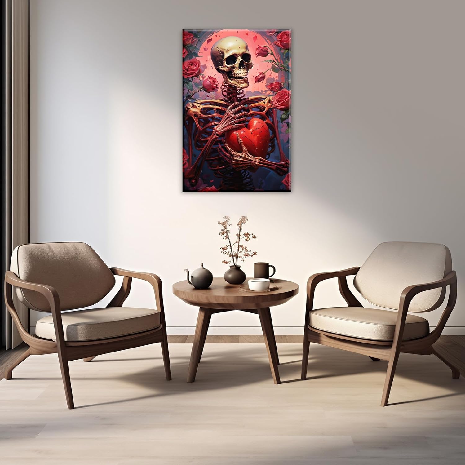 OAAPITI Skull Skeleton Canvas Wall Art Skull Holding Heart Picture Print Romantic Theme Painting Artwork Gothic Poster Wall Decor Living Room Halloween Decor(Artwork-1,12"x18")