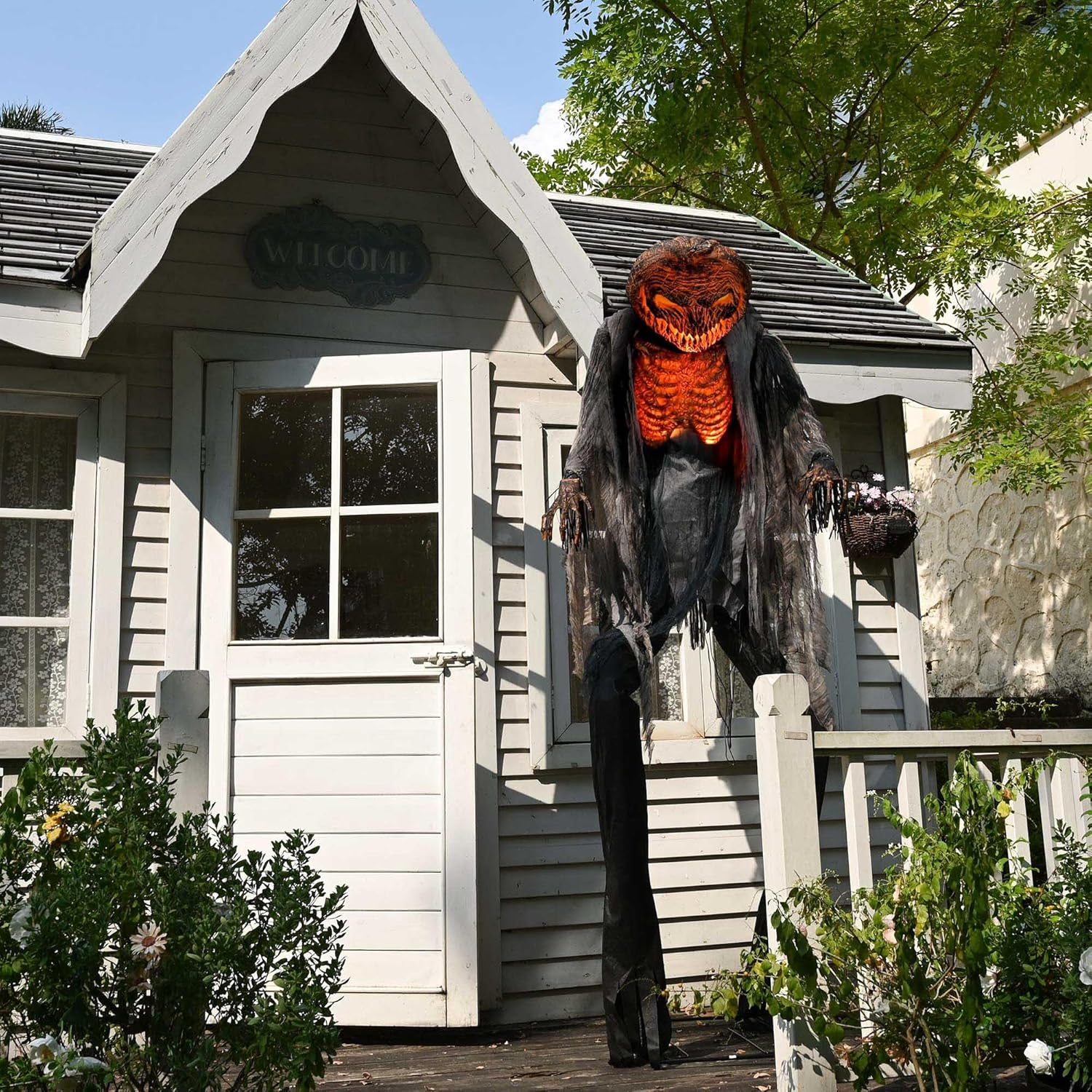 - Animated Scary Motion - 7 ft Animatronics Pumpkin features an IR motion sensor & foot pedal control, activated to abruptly rotate its head and body from side to side and utter bone-chilling curses to terrify trick-or-treaters, ready to turn your home into the scariest haunted house on the block