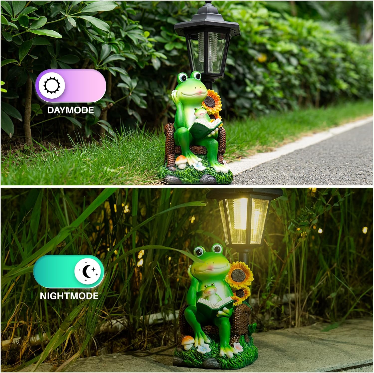 mopha Solar Garden Statues Frog Decor wth Lanterns - 12.5'' Figurines Decorations for Patio Yard Lawn Ornaments Gifts for Christmas Birthday Easter Housewarming