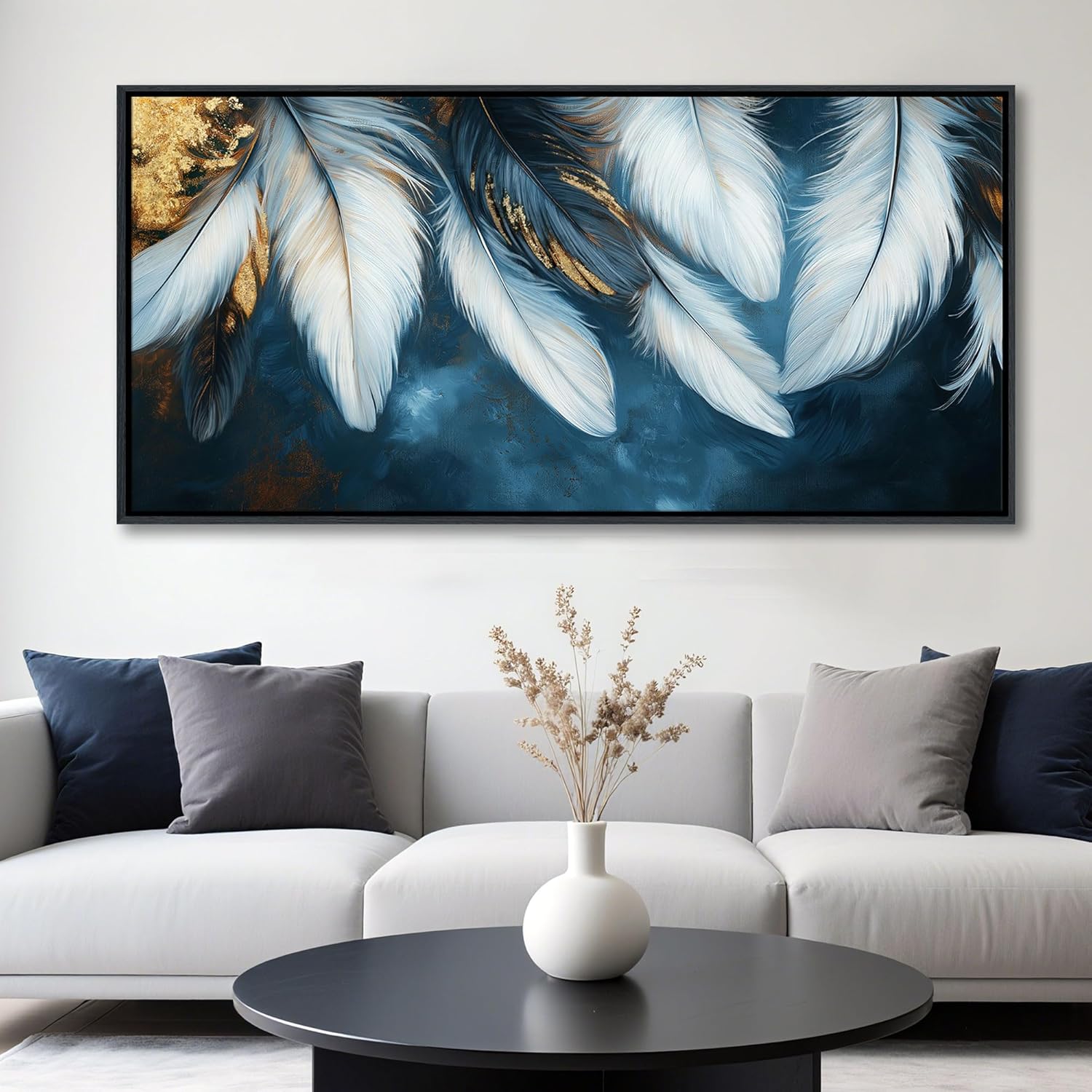 - Wall Art for Living Room:This artwork is crafted from high-quality, fade-resistant canvas and securely mounted on a solid frame. The piece features hand-applied gold foil accents, adding a unique, luxurious touch to the feather design.