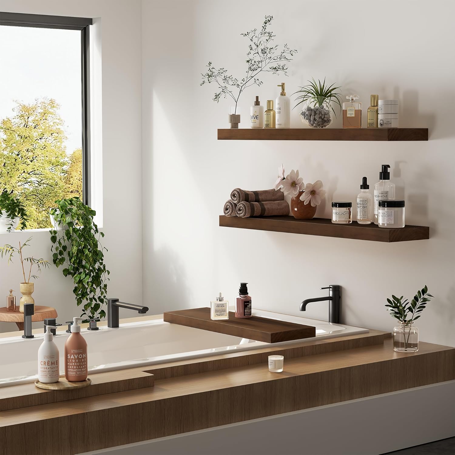 Wood Floating Shelves for Wall 36” x 8”x 1.4” Shelf Floating Rustic Farmhouse Decor, Heavy Duty Shelf Hold 80 lbs, Wall Shelves for Bathroom Living Room Kitchen Bedroom Office, 2 Packs Walnut