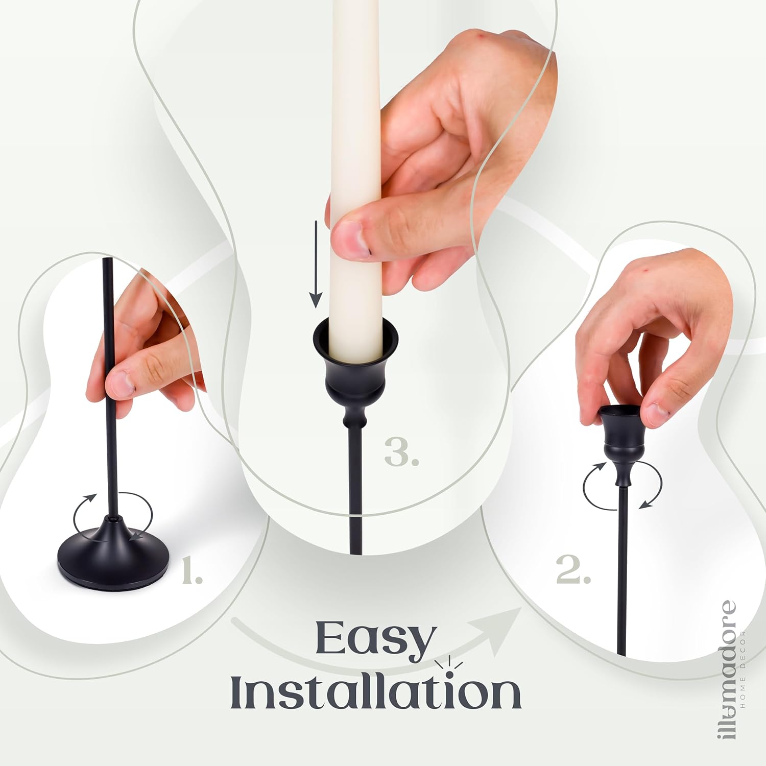 - SIMPLE TO ASSEMBLE! These candlestick holders consist of three pieces that can be quickly and securely screwed together. The sturdy base provides stability and includes an anti-slip mat to protect your surfaces from scratches.
