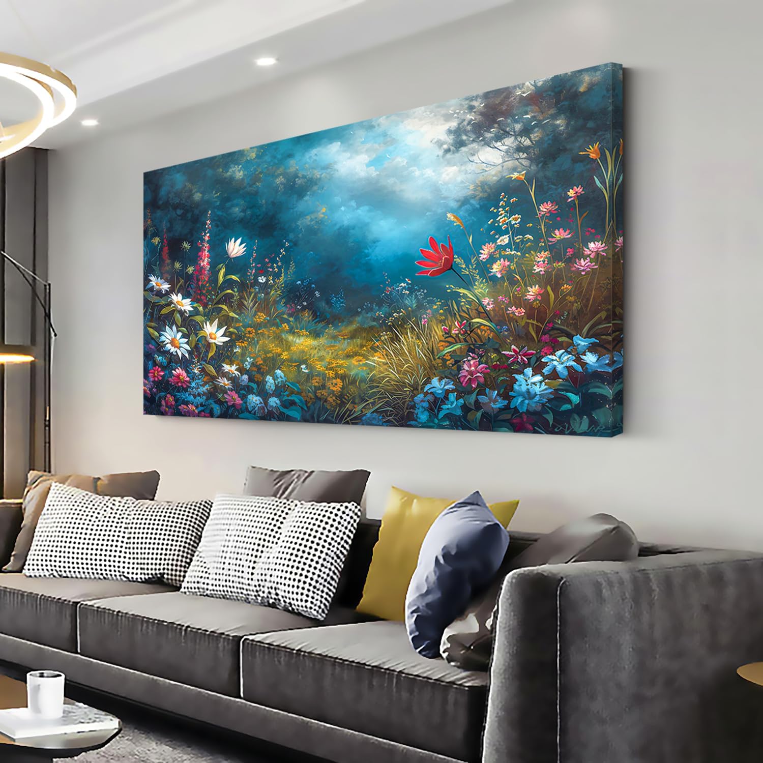 LASMOND Beautiful Colorful Grassland in Forest Landscape Wall Art Decor Artwork for Bedroom (20x40 Inches)