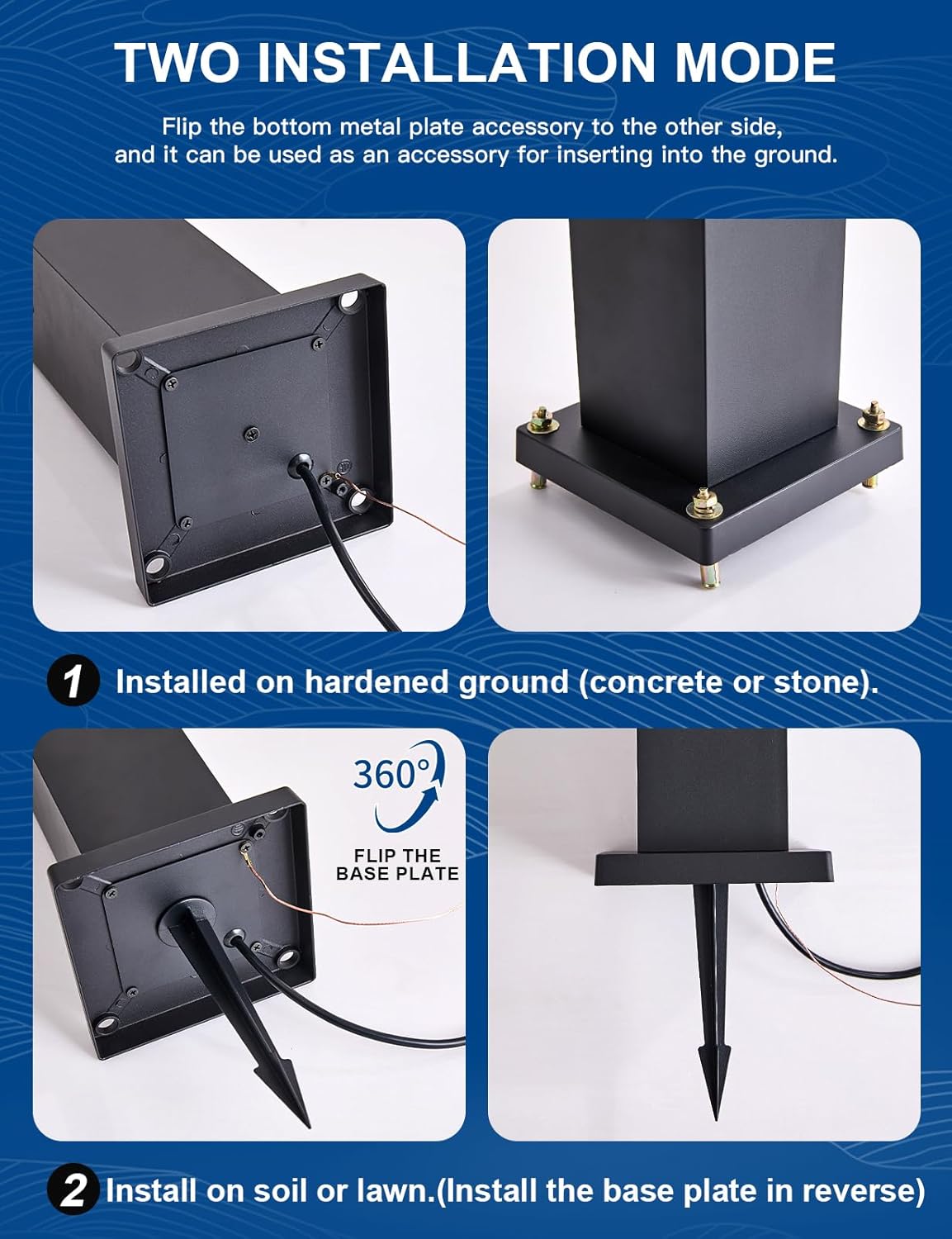 - 🔩【2 INSTALLATION OPTIONS & EASY TO INSTALL】:The path light provides two installation methods, which can be applied to most scenes. It can be fixed with bolts on hardened ground and spikes on soil or lawn. Both accessories are included in the package.