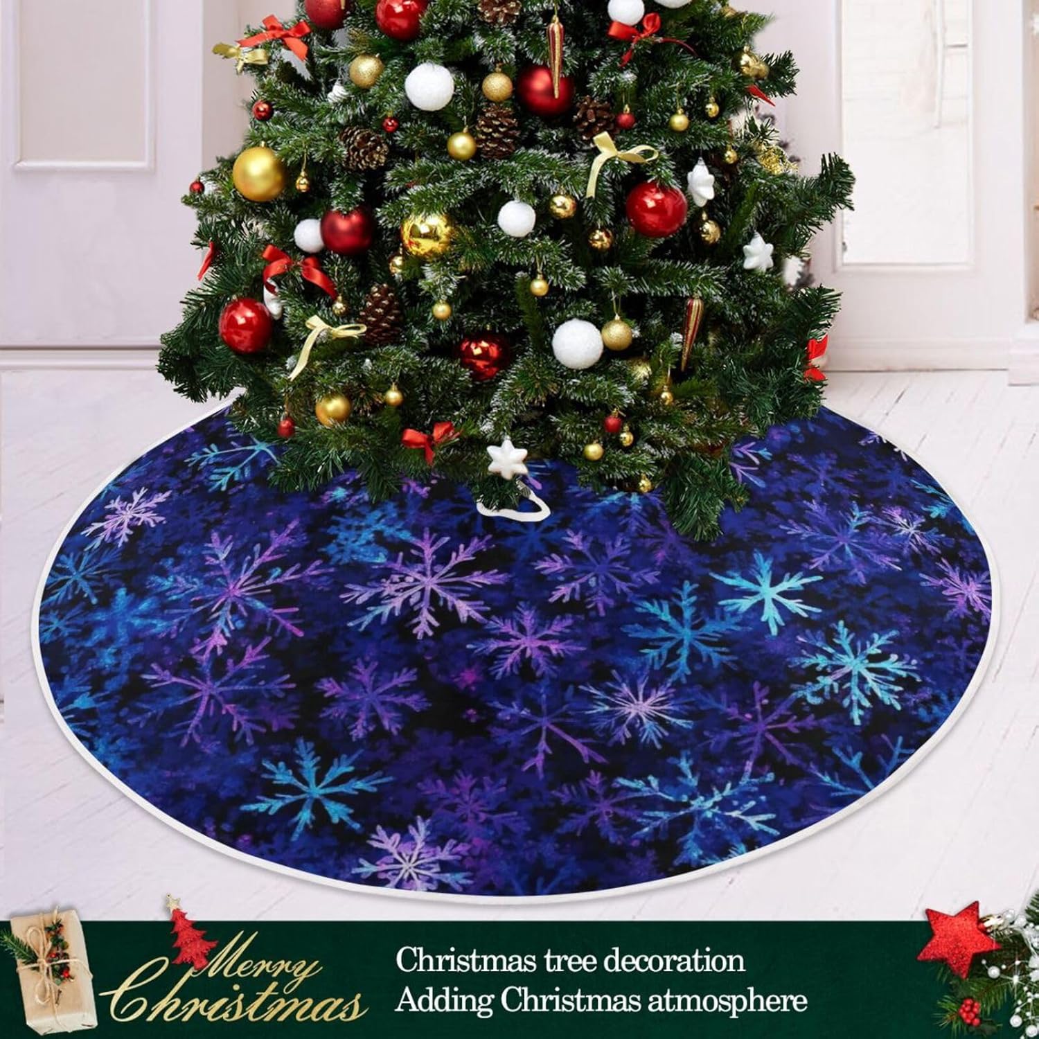 Christmas Blue Purple Snowflake Tree Skirt, Seasonal Tree Mat Holiday Party Supplies Ornaments Indoor Outdoor Decorations for Tabletop Trees 47.2 Inches