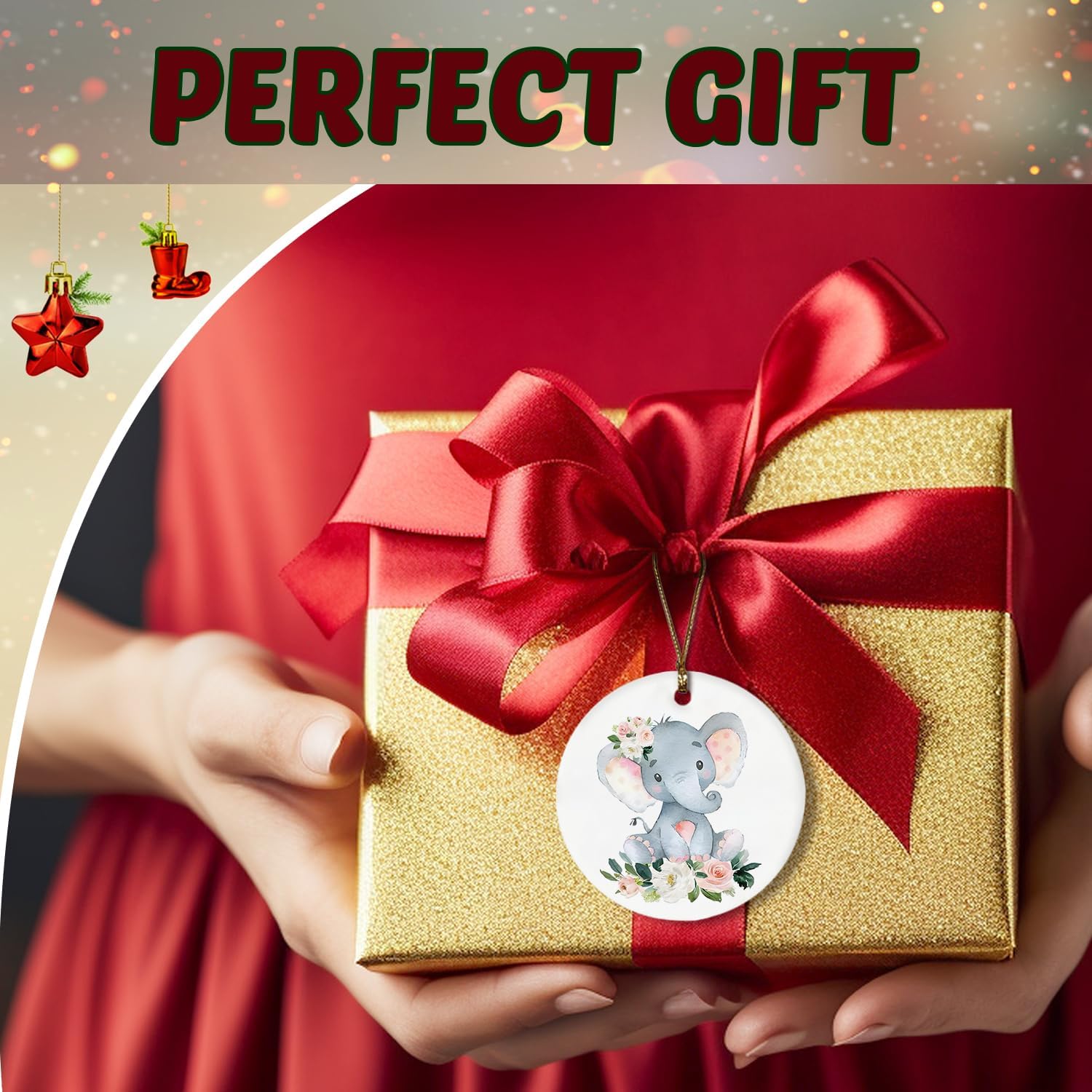 Elephant Ornament, Elephant Ornaments for Christmas Tree, Elephant Gifts for Women, Elephant Floral Ceramic Christmas Ornaments, Elephant Decorative Hanging Ornament