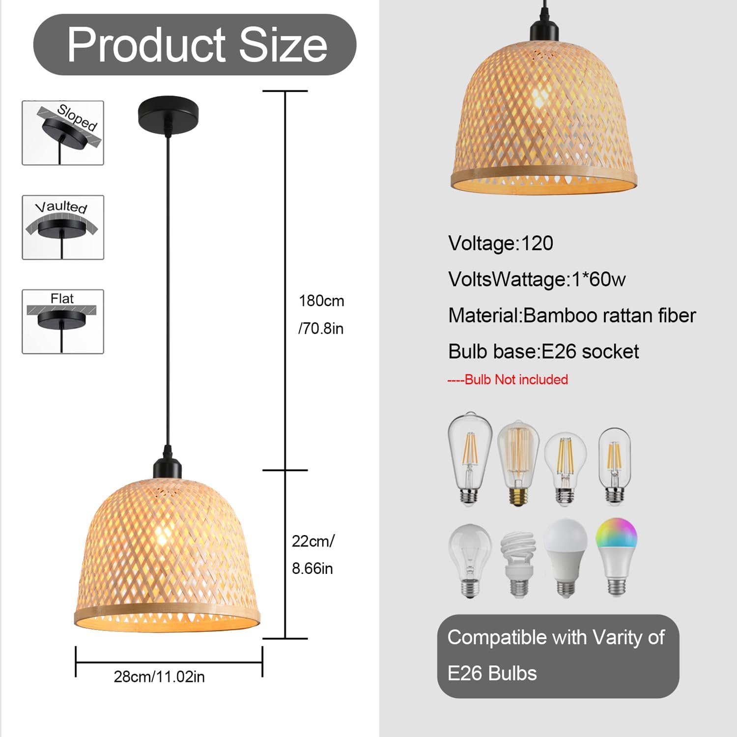- 【Excellent Design】Bamboo/wood/rattan, the pendants are made of natural materials. The lights are hand woven with natural bamboo by superb skills bamboo artists. Decorated with classic tropical style elements, creates a wonderfully new look