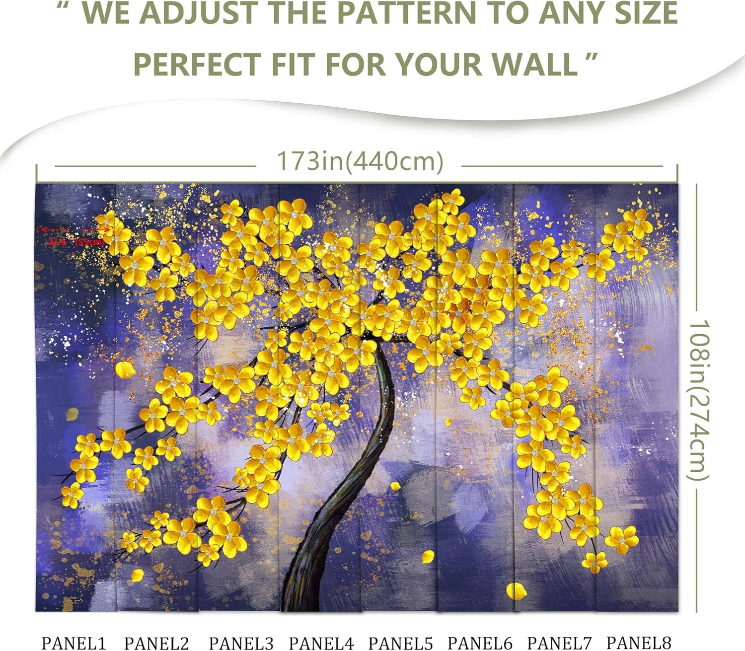 Yellow Flower Tree Wall Mural Purple Background Wall Decor for Bedroom Livingroom(Not Peel and Stick)